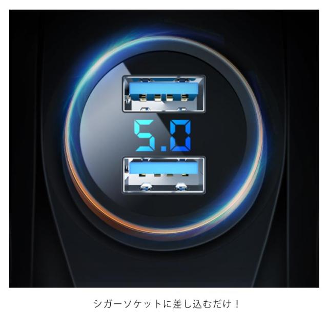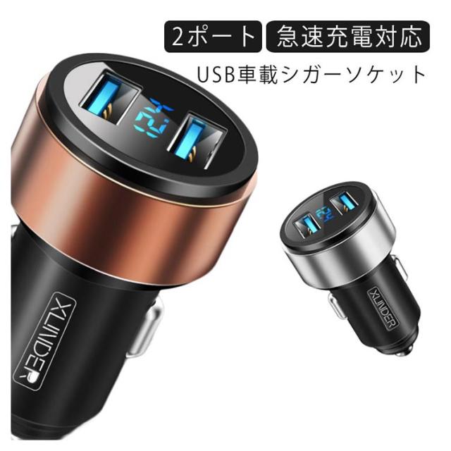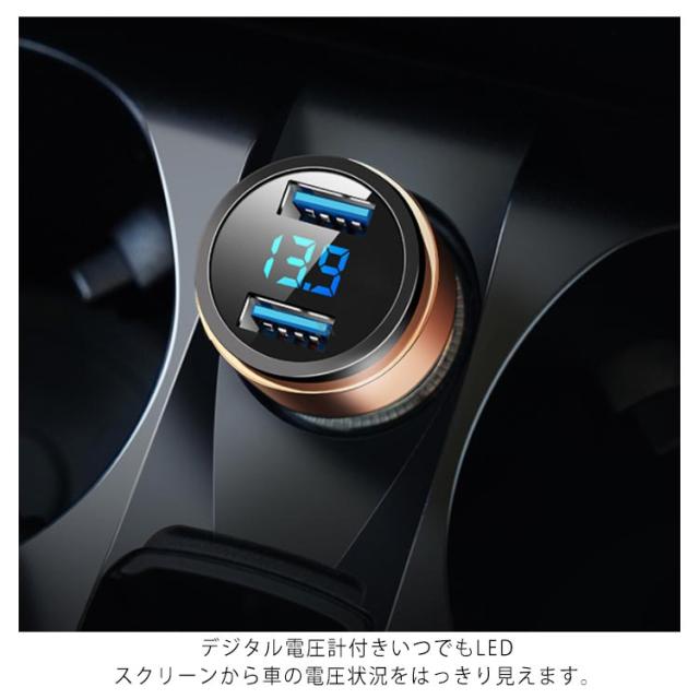 シガーソケット USB カーチャージャー 車載充電器 シガー挿込 デジタル 電圧計 ボルテージメーター 電圧 デジタル表示 iPhone スマホ 2ポート急速充電2台同時 5.4A Quick Charge 自動車 携帯 車 充電 電圧チェッカー 電流チェッカー 電流テスター ソケット 送料無料