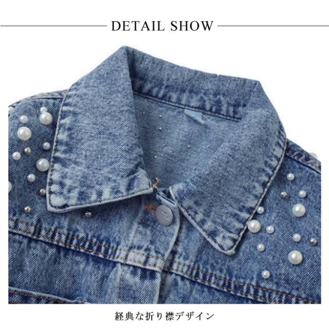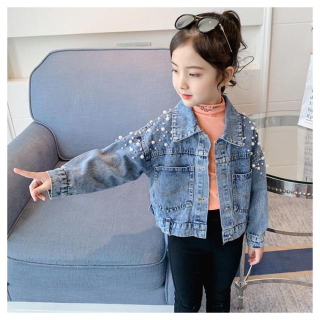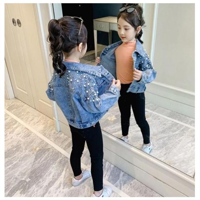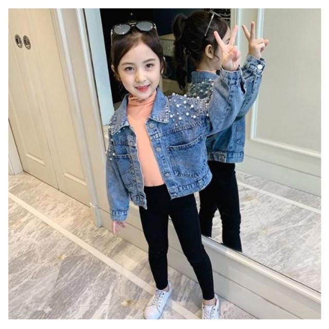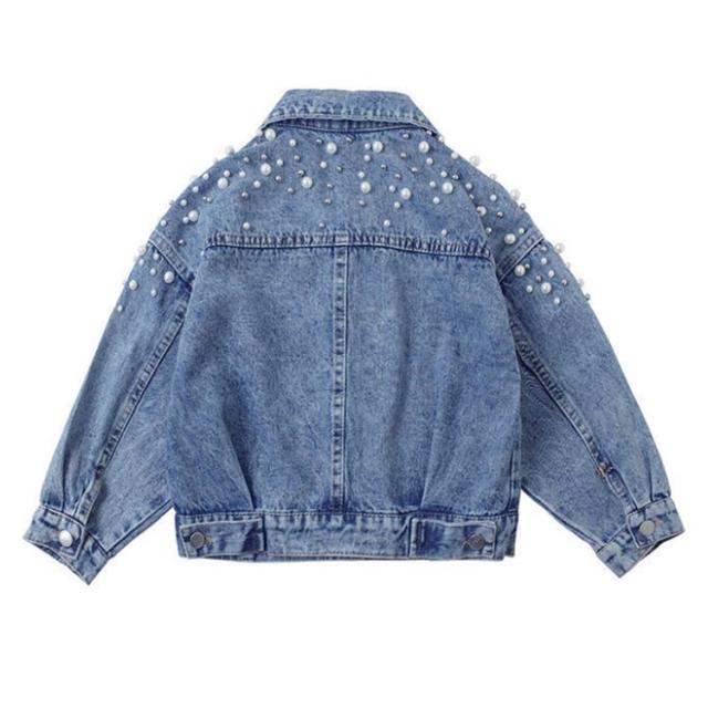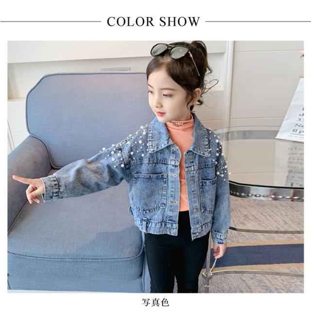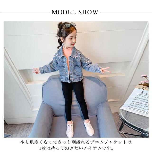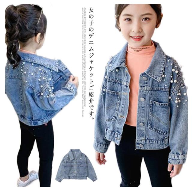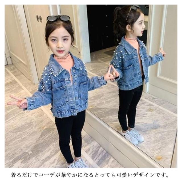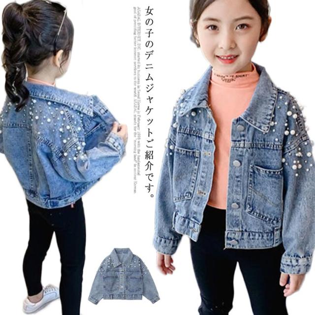 送料無料 子供服 デニムジャケット 女の子 パール付き ガールズ アウター キッズ トップス 長袖 デニム アウター 通園 送料無料