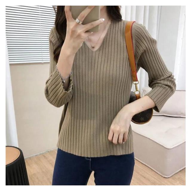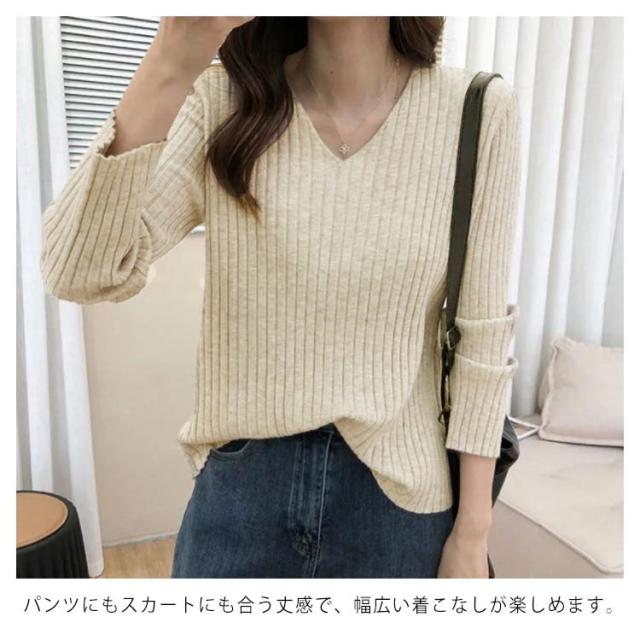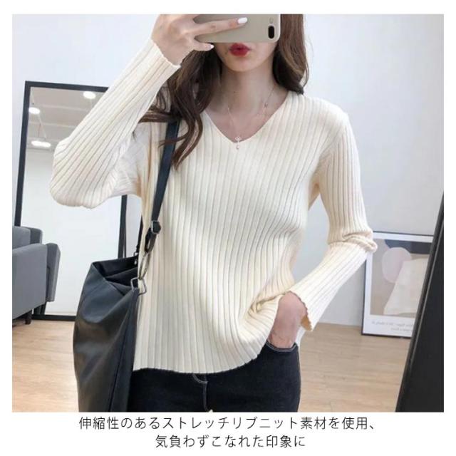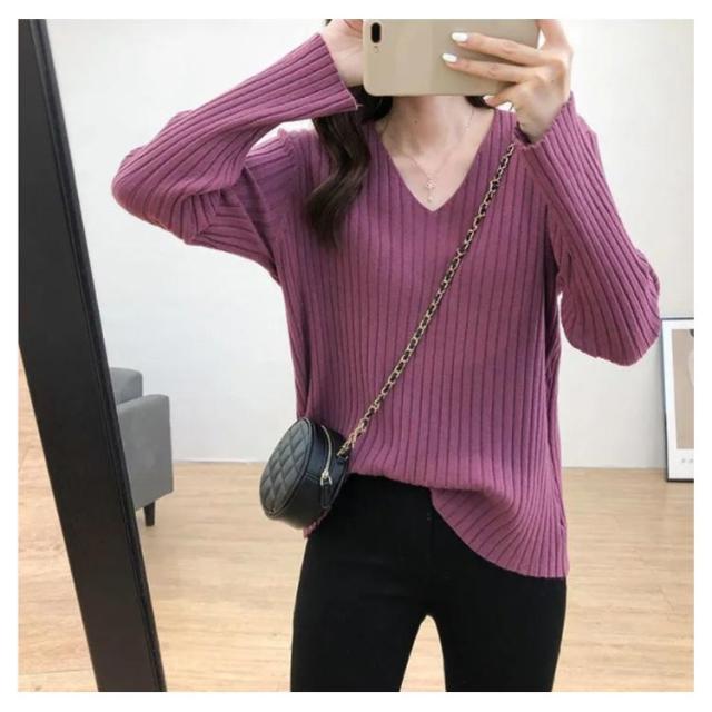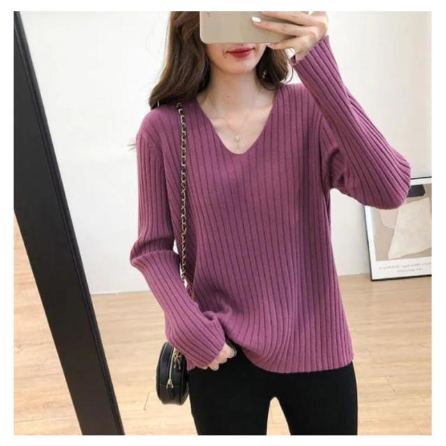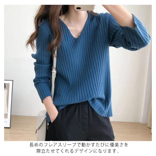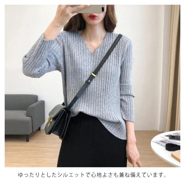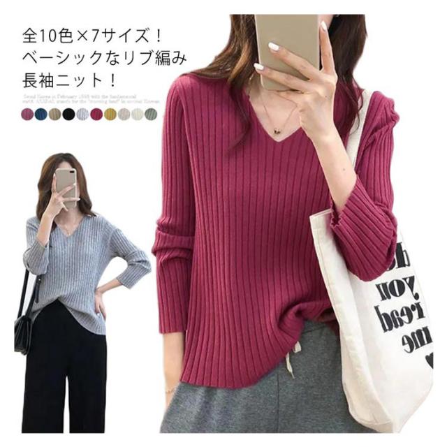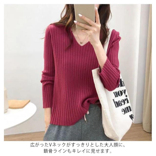 ニットトップス 全10色×7サイズ!大きサイズ Vネック ゆるニット ゆったり プルオーバー リブ 冬 セーター Vネック ニット 全10色×7サイズ!大きサイズ 秋 春 シンプル 無地 リブニット