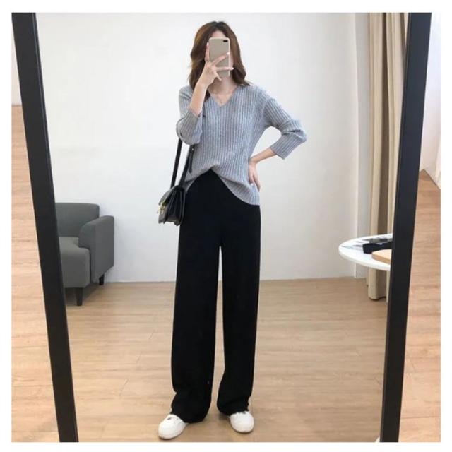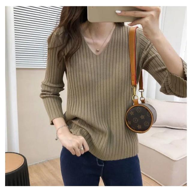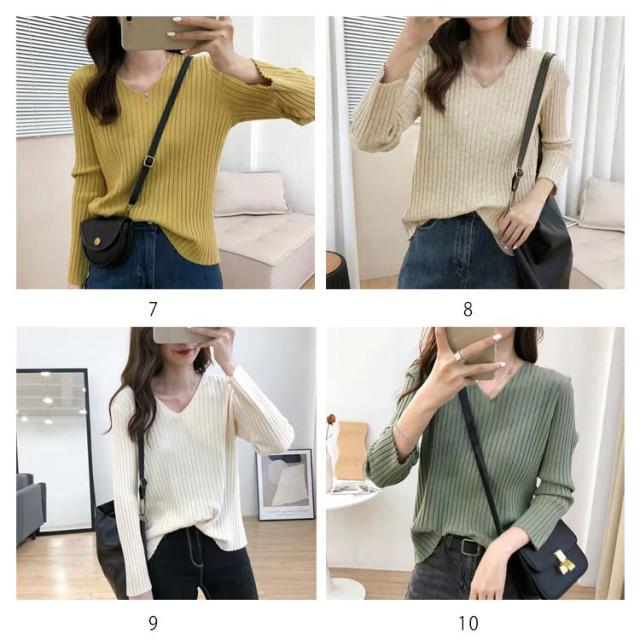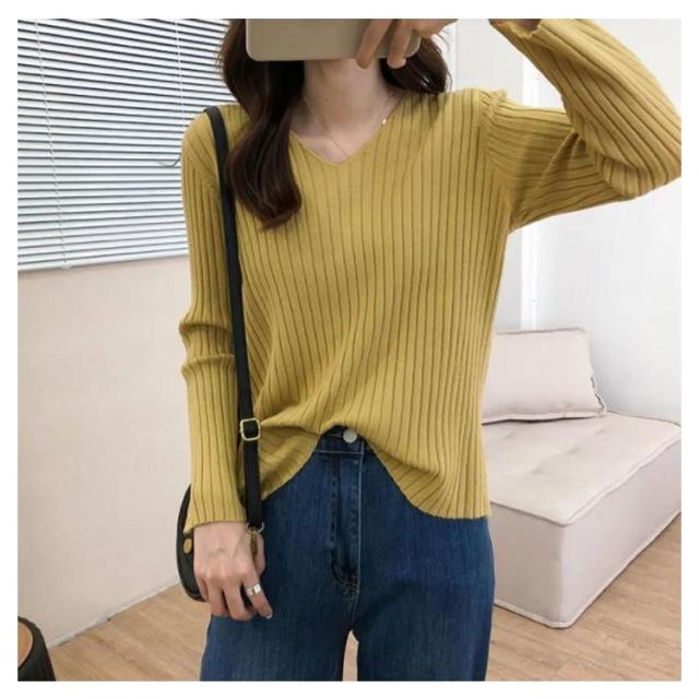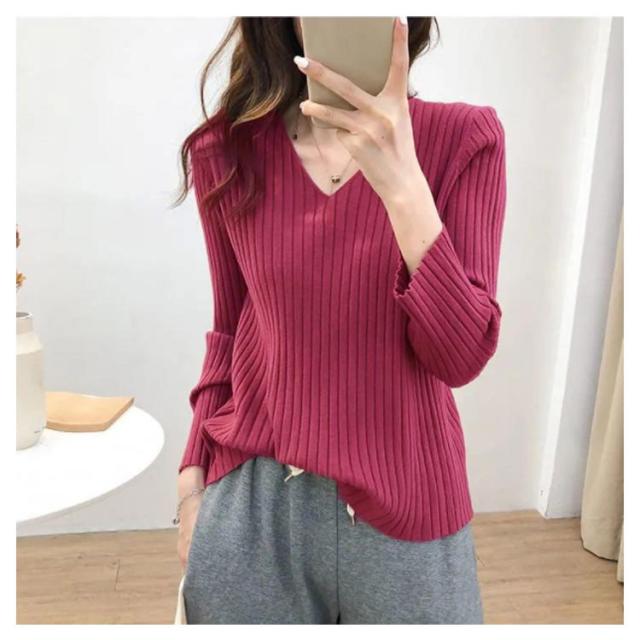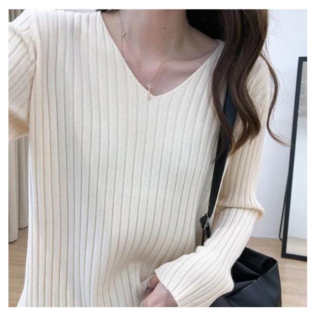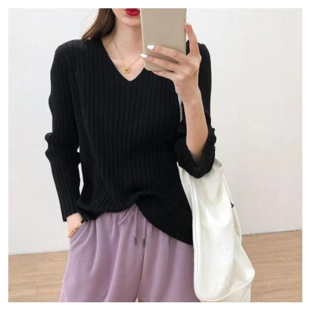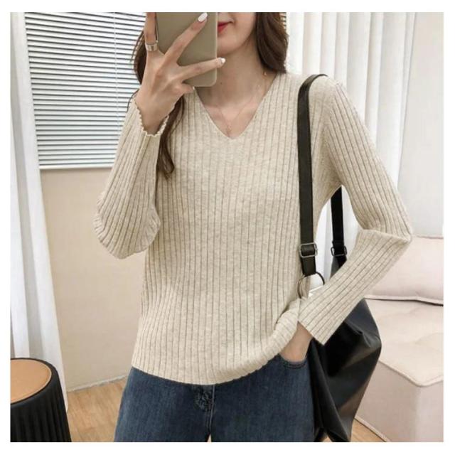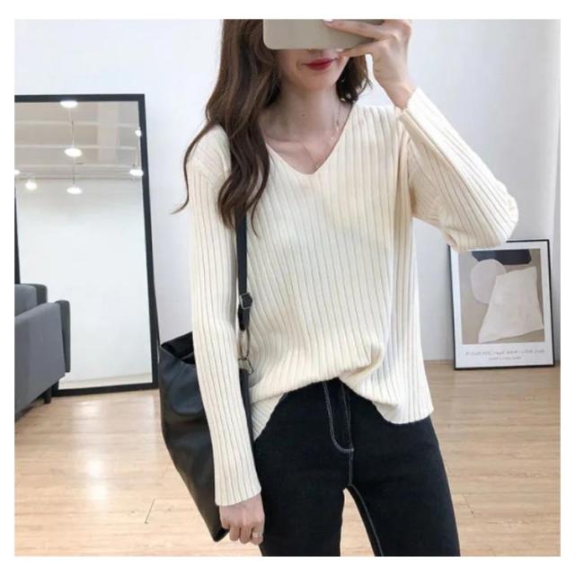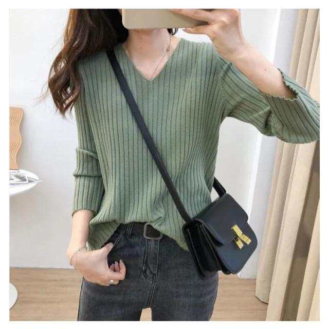 ニットトップス 全10色×7サイズ!大きサイズ Vネック ゆるニット ゆったり プルオーバー リブ 冬 セーター Vネック ニット 全10色×7サイズ!大きサイズ 秋 春 シンプル 無地 リブニット