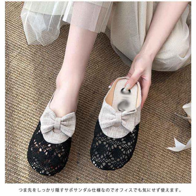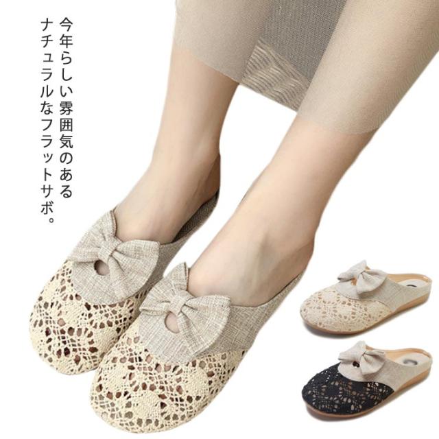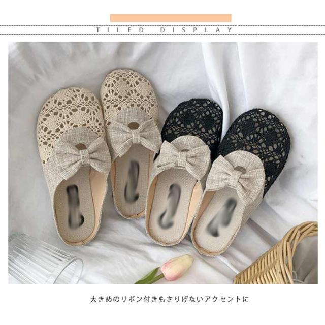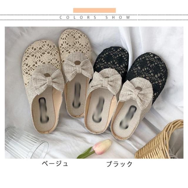 サボ 室内スリッパ レース レディース メッシュ編み スリッパ メッシュ編み ペタンコサンダル 透け編み 春 夏 秋 ミュール 軽量 滑り止め カジュアル フラットサンダル シューズ 靴 歩きやすい ローヒール サンダル