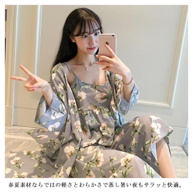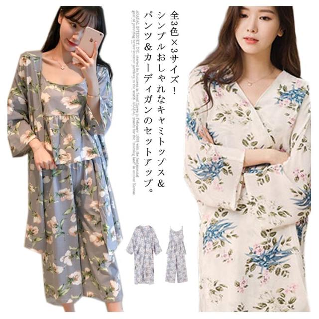 ルームウェア キャミソール ナイトウェア パンツ カーディガン セットアップ 夏 レディース 花柄 部屋着 春夏 ルームウェア 3点SET