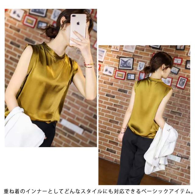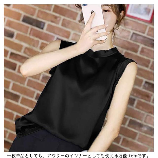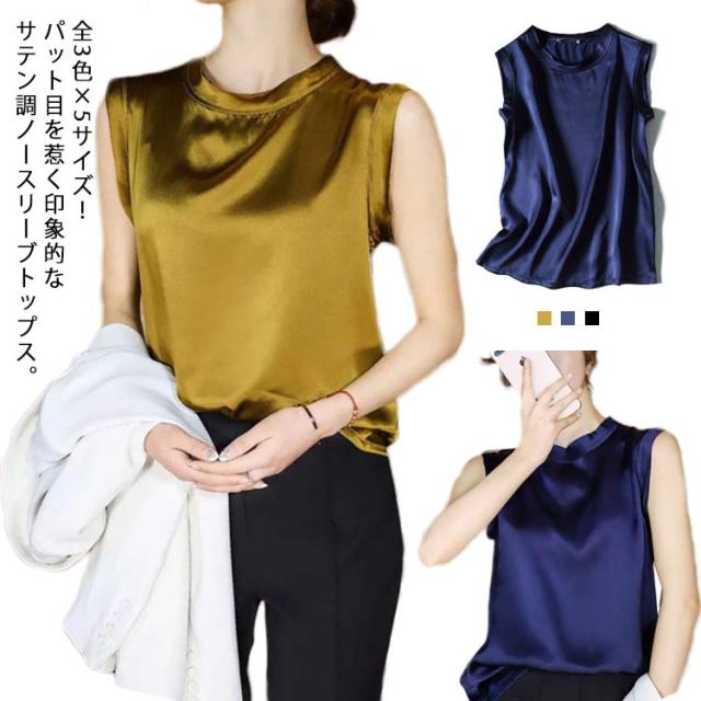 スーツインナー ノースリーブトップス タンクトップ 全3色×5サイズ!サテン調 インナー シンプル レディース トップス 無地 おしゃれ 全3色×5サイズ!サテン調