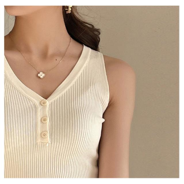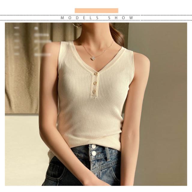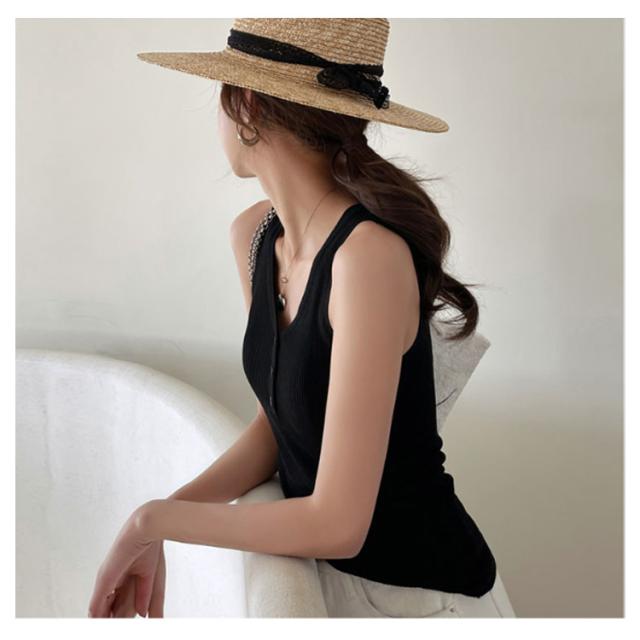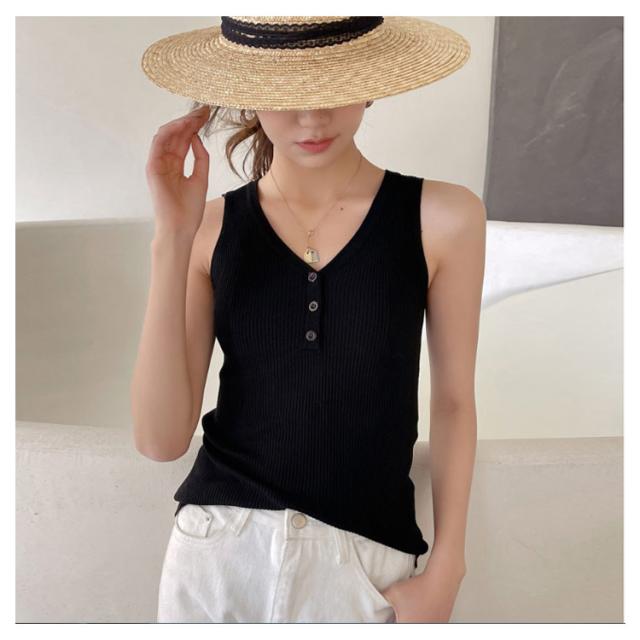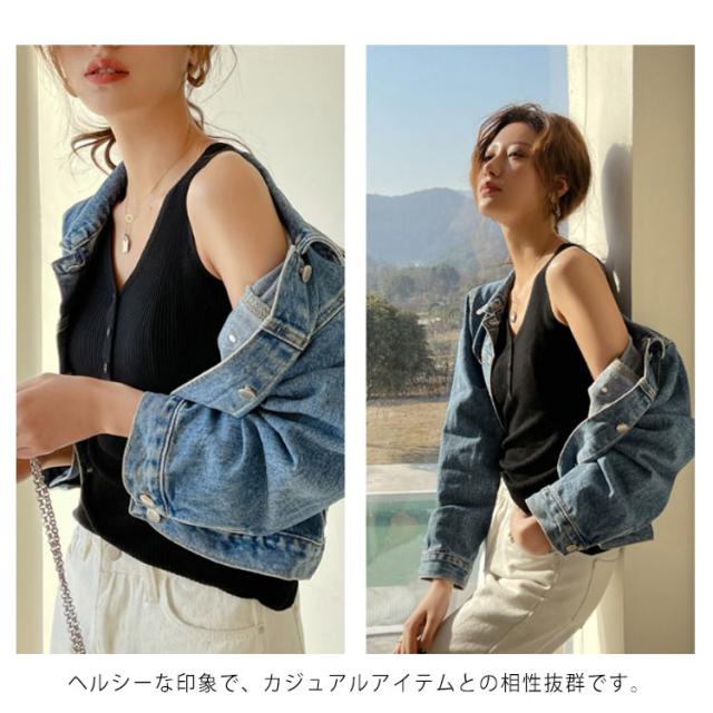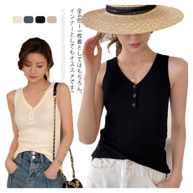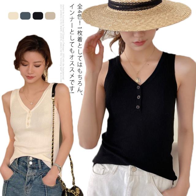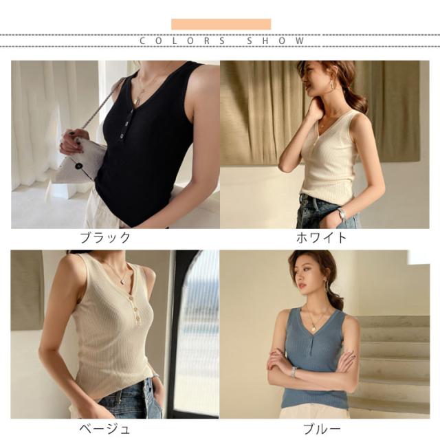 ニットタンクトップ ヘンリーネック ノースリーブ タンクトップ レディース リブニット タンクトップ トップス インナー ニット 無地 カジュアル 大人 春夏 Vネック
