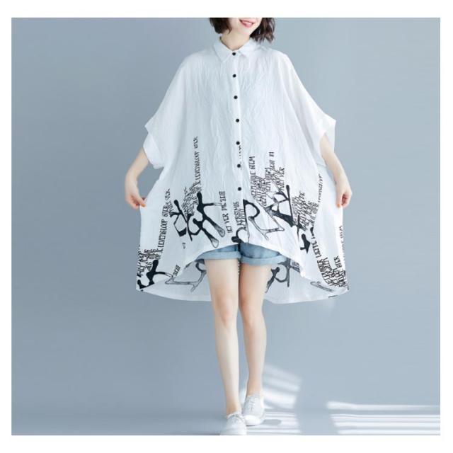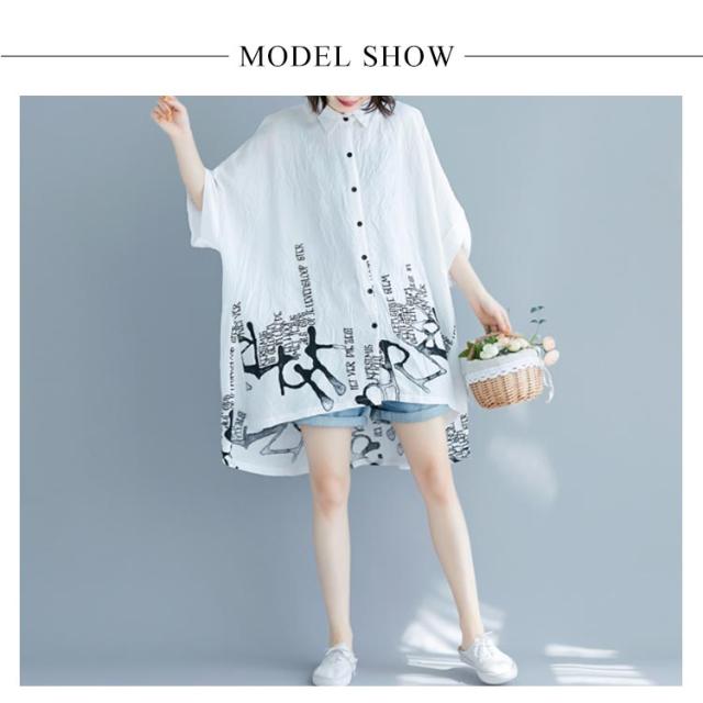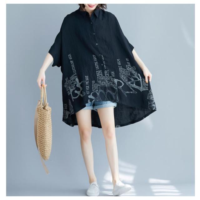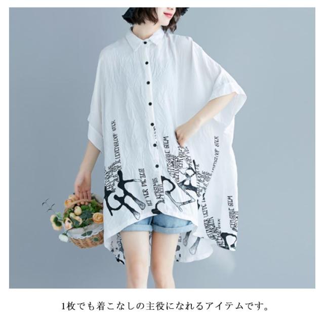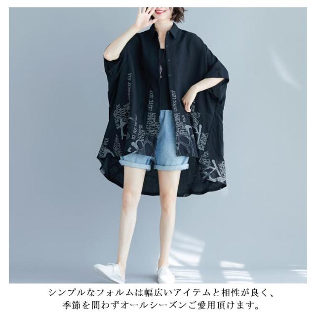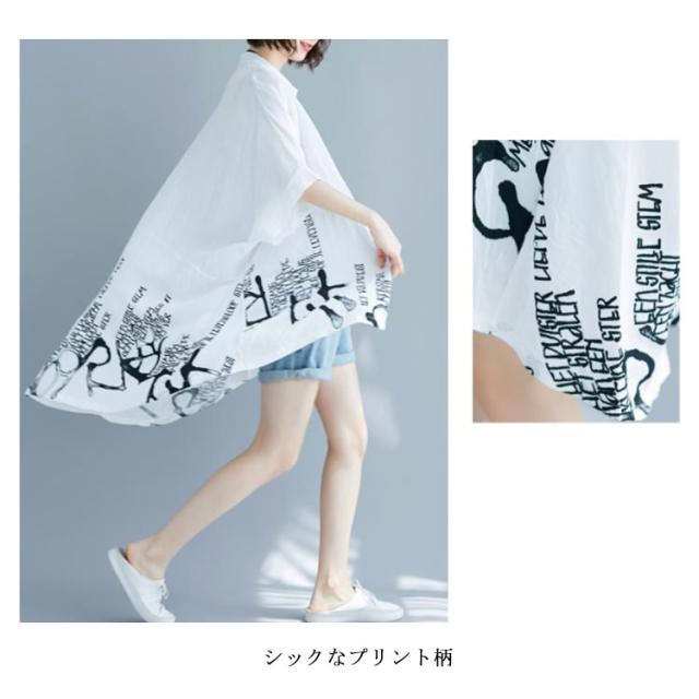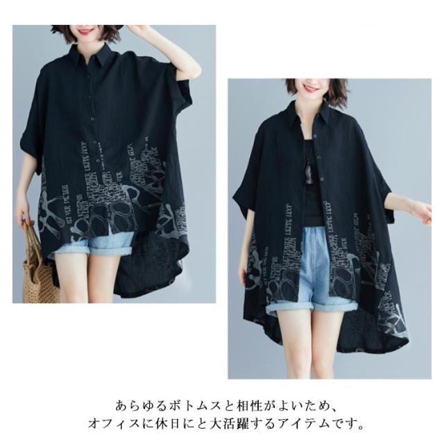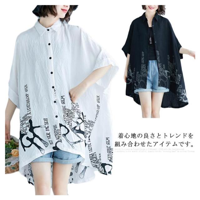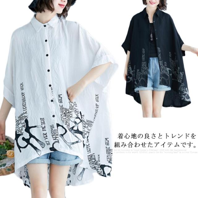 薄手 ドルマンシャツ ゆったり カジュアルシャツ プリント柄 5分袖 夏 レディース ドルマンシャツ オーバーシャツ トップス 可愛い シャツ
