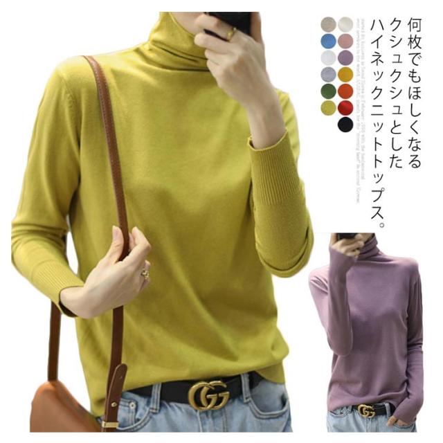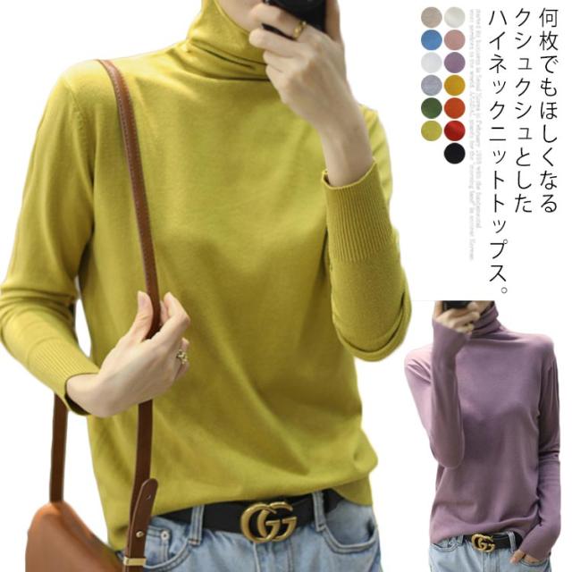 インナー トップス 薄手 無地 ニットソー ハイネックニット 全13色×6サイズ!ハイネックインナー 無地ニット ハイネック クシュクシュネック 全13色×6サイズ!ハイネックインナー おしゃれ 暖かい 秋冬 冬服 シンプル