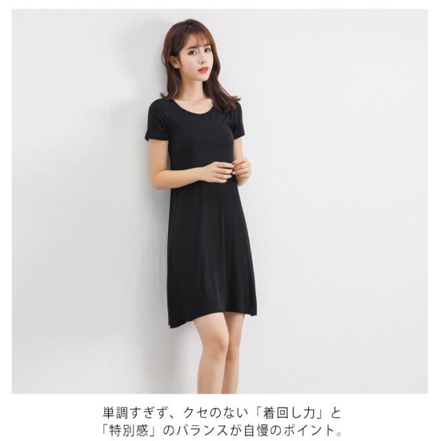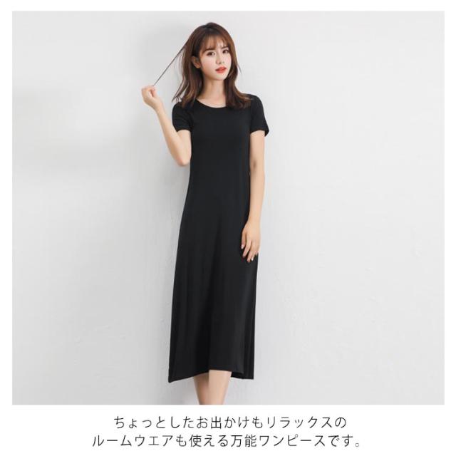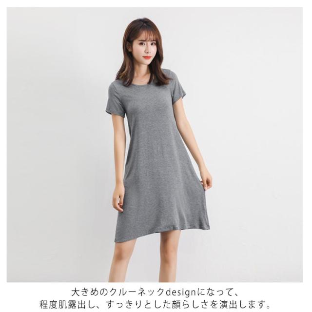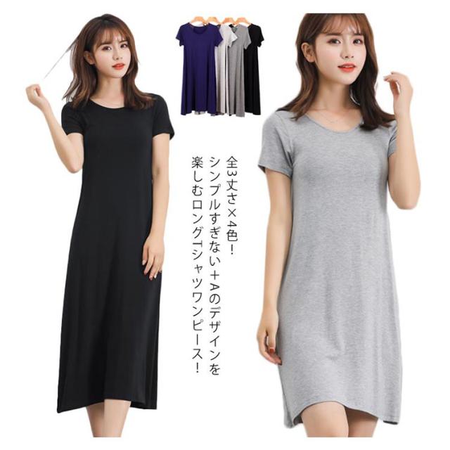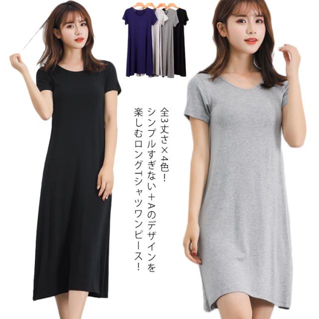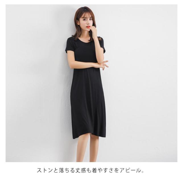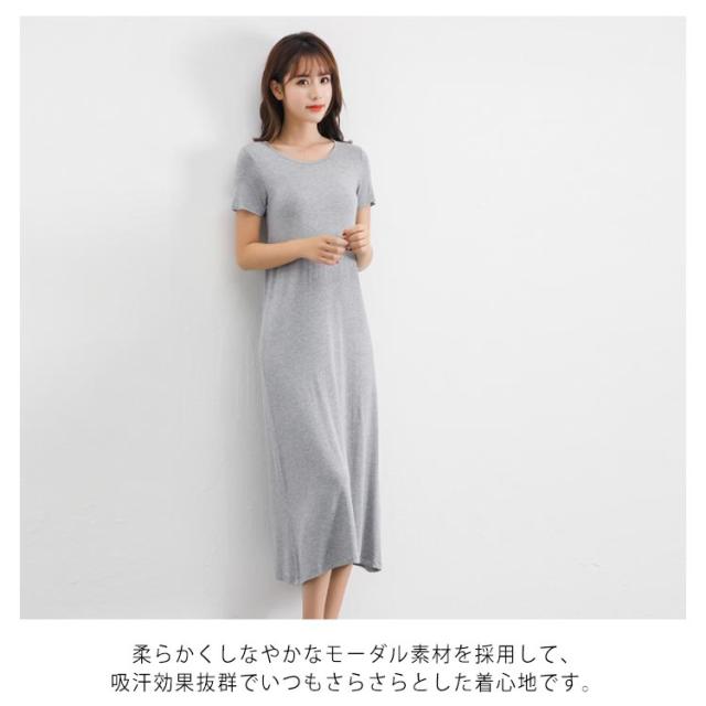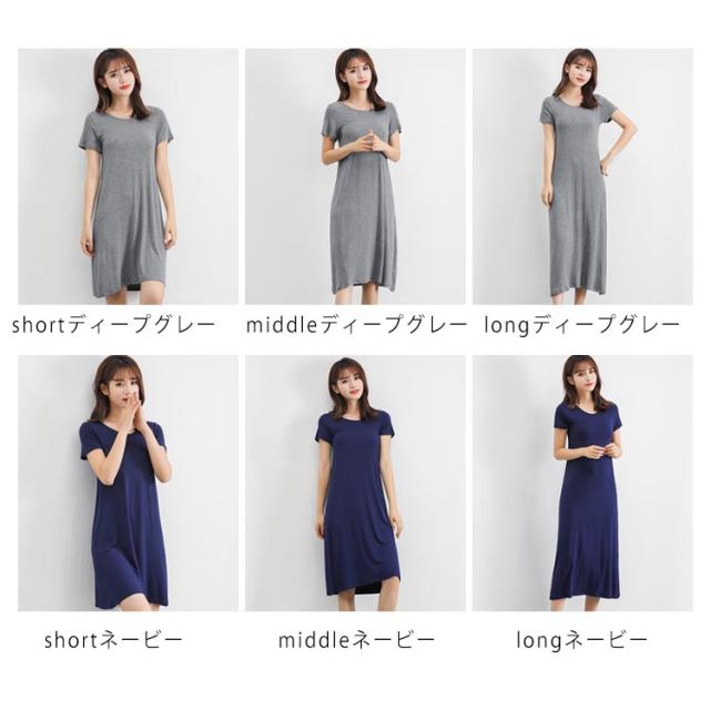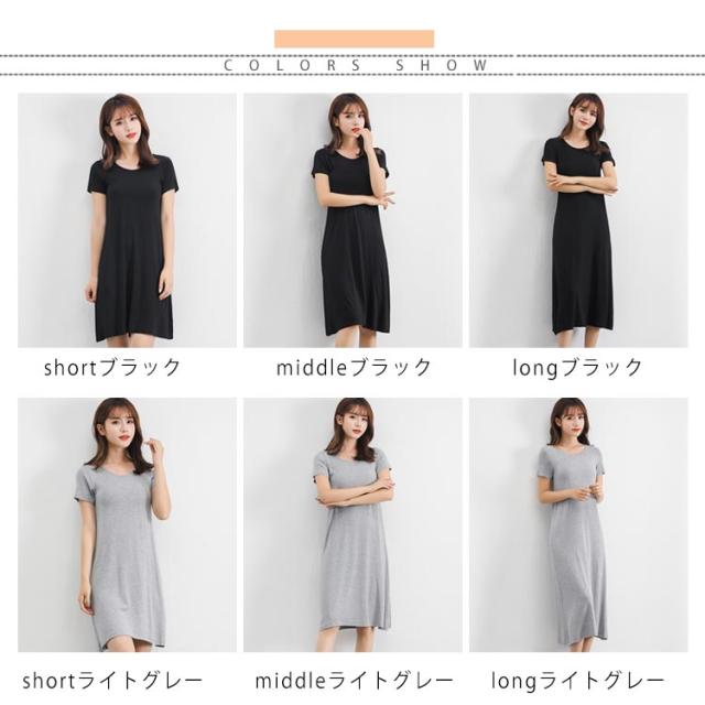 無地 ミドル丈 Tシャツワンピース ルームウエア パジャマ インナー レディース ロング丈 寝間着 部屋着 半袖 ワンピース ワンピースパジャマ Uネック 普段着 全3丈さ×4色!半袖ワンピース 春夏 全3丈さ×4色!半袖ワンピース
