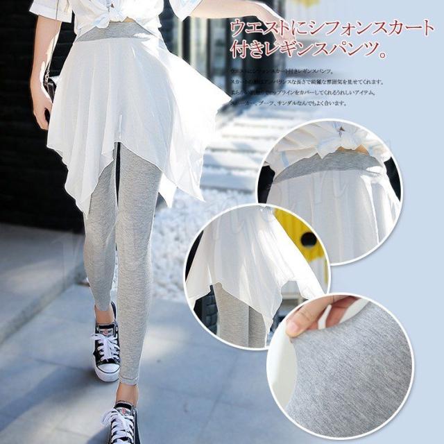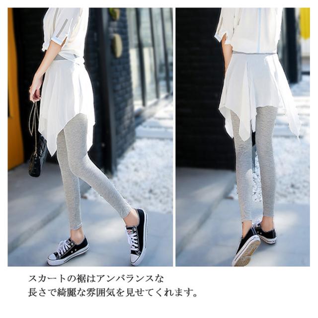 レディース パンツ 重ね着 ヘムライン裾 レギパン ロング 送料無料レギンス ストレッチ シフォンスカート スカート付き 可愛い 送料無料レギンス 通学 通勤 おしゃれ