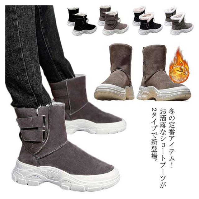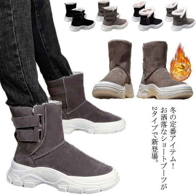防寒 裏ボア カジュアルシューズ ムートンブーツ スノーブーツ メンズ 男性靴 ショートブーツ 秋冬 裏起毛 お洒落 暖かい 厚底 スノーブーツ
