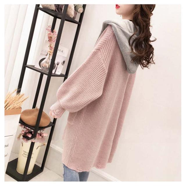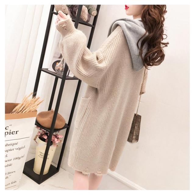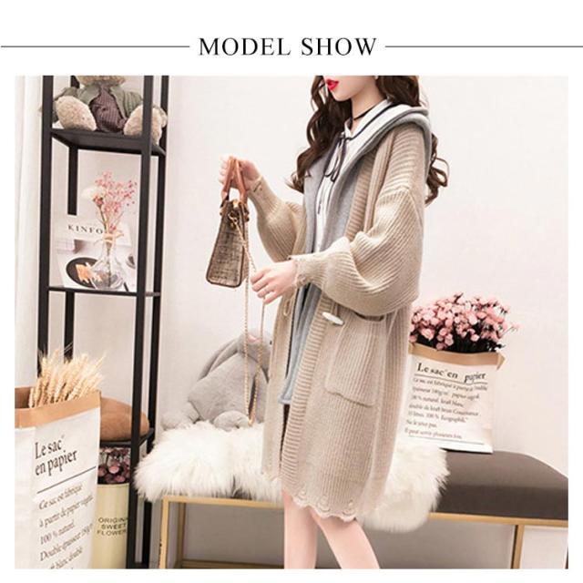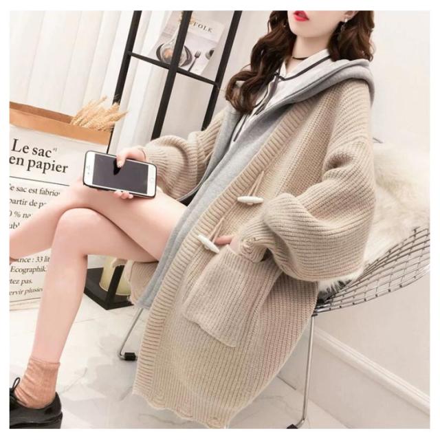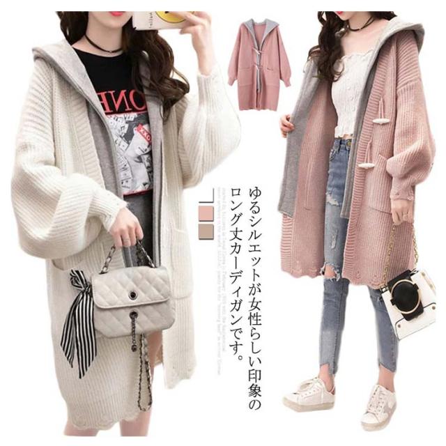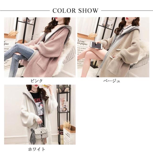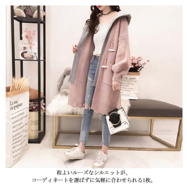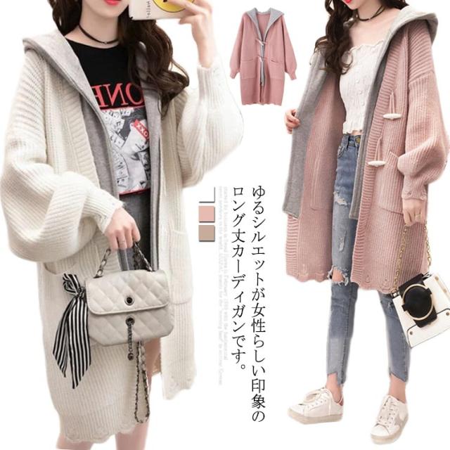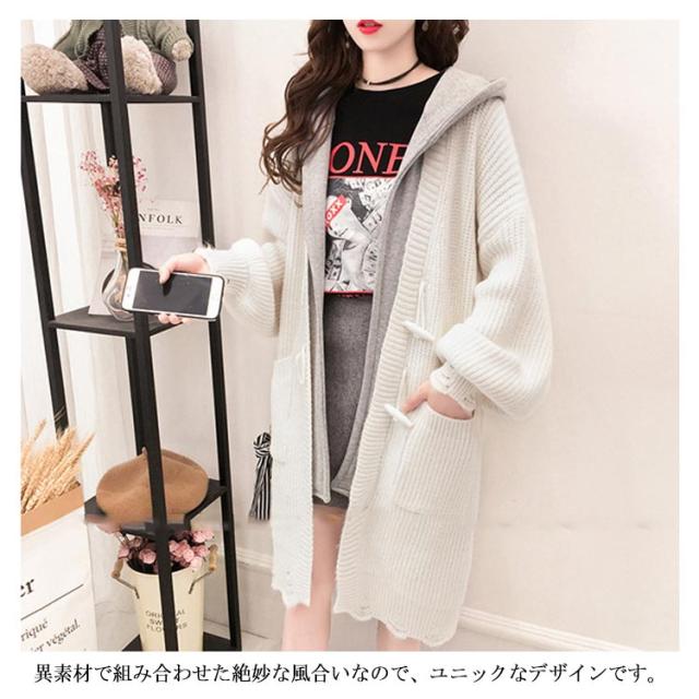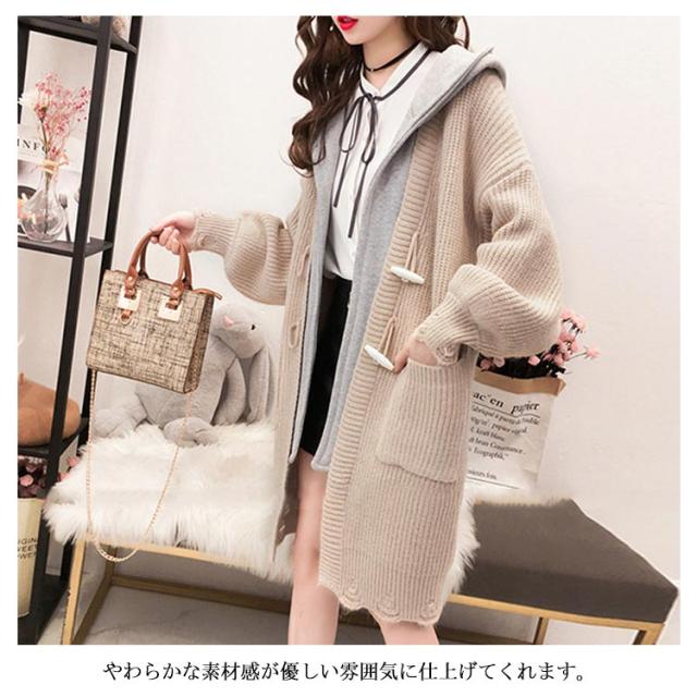 アウター レディース カーディガン 長袖 切り替え ゆるニット ロングカーディガン フード付き ニットカーディガン ロング丈 体型カバー オシャレ ロングカーディガン