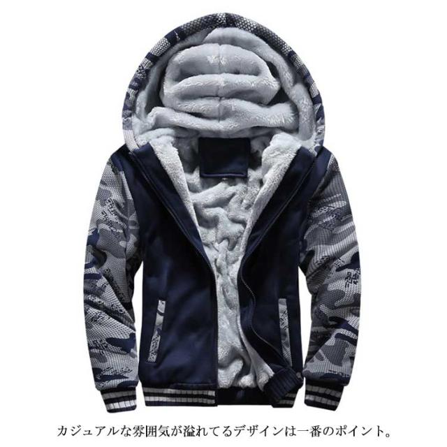 プルオーバー 長袖 パーカー トップス フード付き 裏ボア 迷彩柄 ビッグシルエット カモフラ 裏起毛 厚手 防寒着 メンズ 冬物 秋服 大きいサイズ パーカー