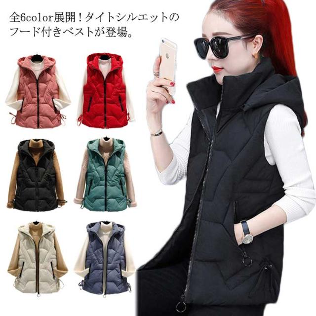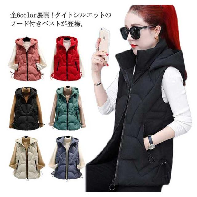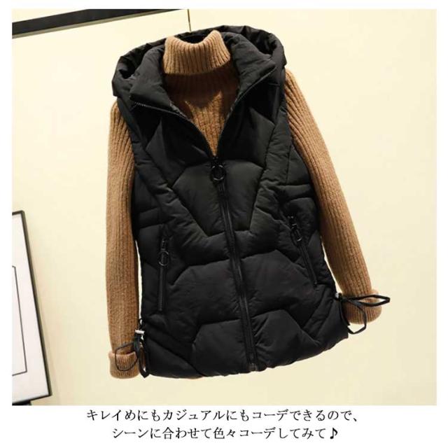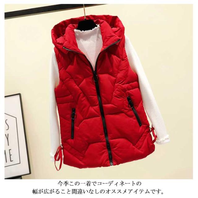ベスト 中綿ベスト ベスト 無地 フード付き 大きいサイズ 着痩せ 厚手 ダウン風ベスト アウター お洒落 ゆったり レディース