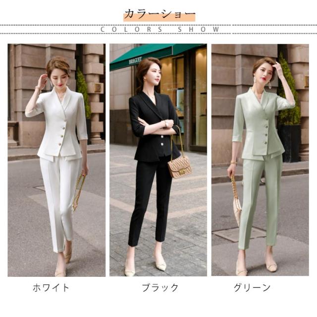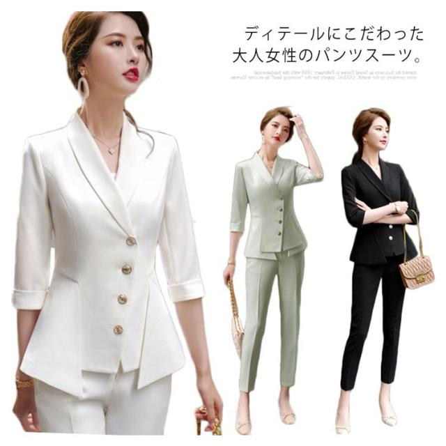 スーツ パンツドレス カジュアル 春夏 パンツスーツ ビジネス パンツドレス 結婚式 オフィス 卒園式 入学式 大きいサイズ 韓国ファッション レディース