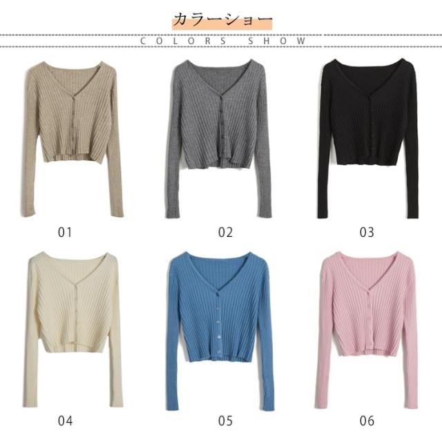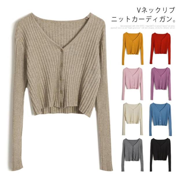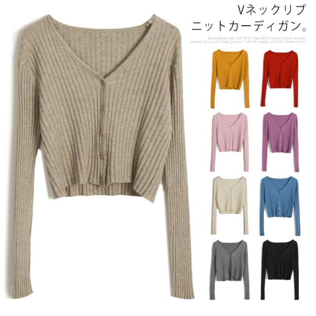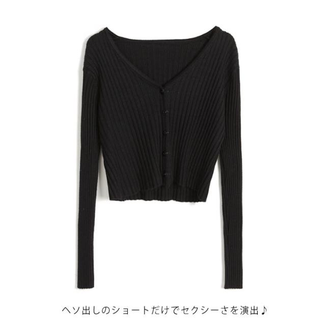 ニットカーディガン ヘソ出し ショート カーディガン ニットカーディガン 長袖 リブにニット 羽織り クロップド丈 レディース Vネック セクシー セーター ニット
