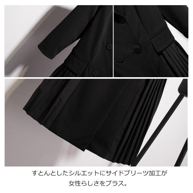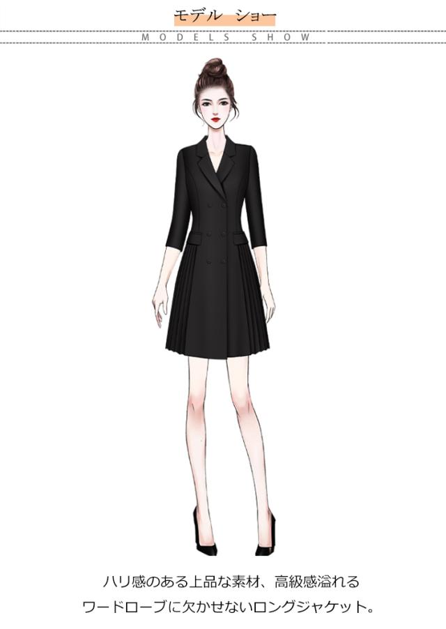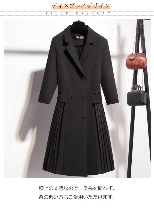 レディース スーツ ワンピース 開襟 ワンピース プリーツ 切り替え 通勤 トレンチコート風 7分袖 ワンピース 就活 リクルート 春秋 OL オフィス フォーマル ワンピース スリム ダブルボタン