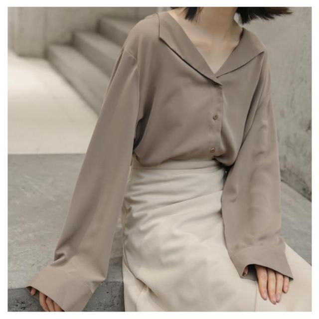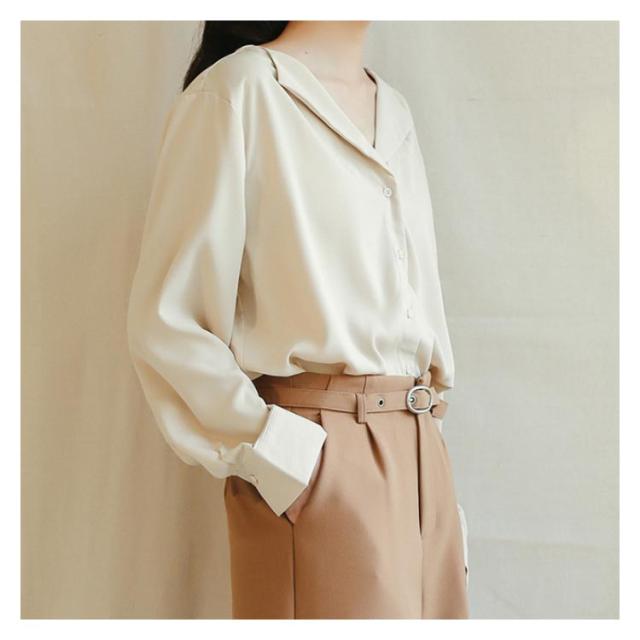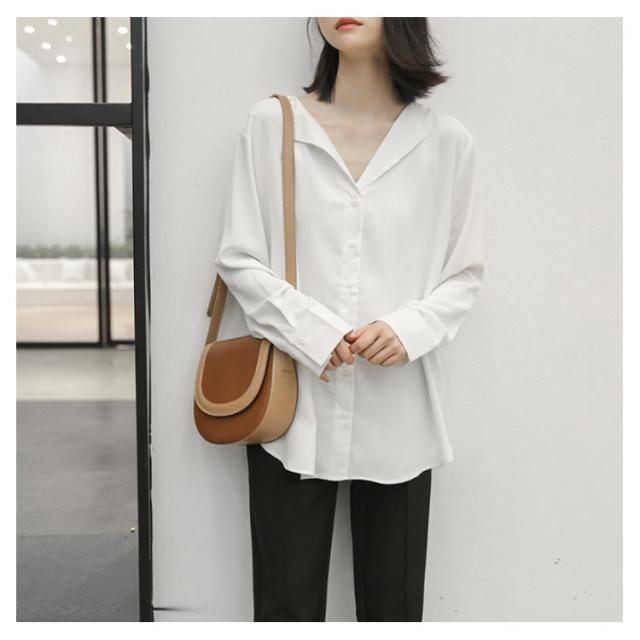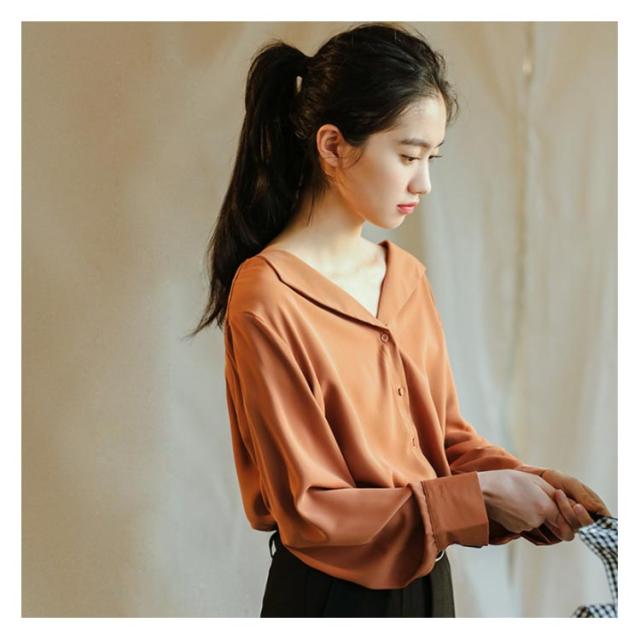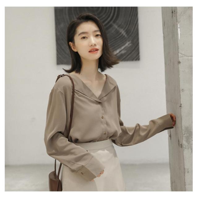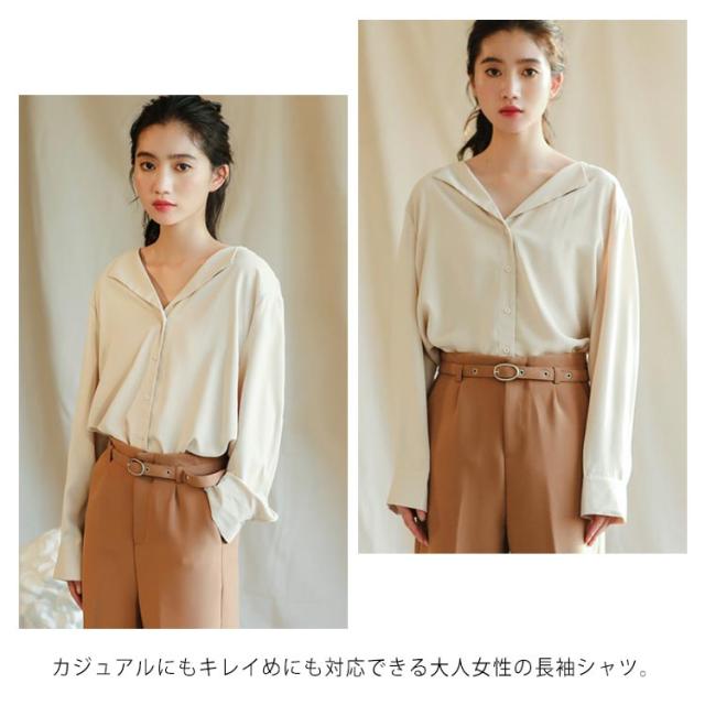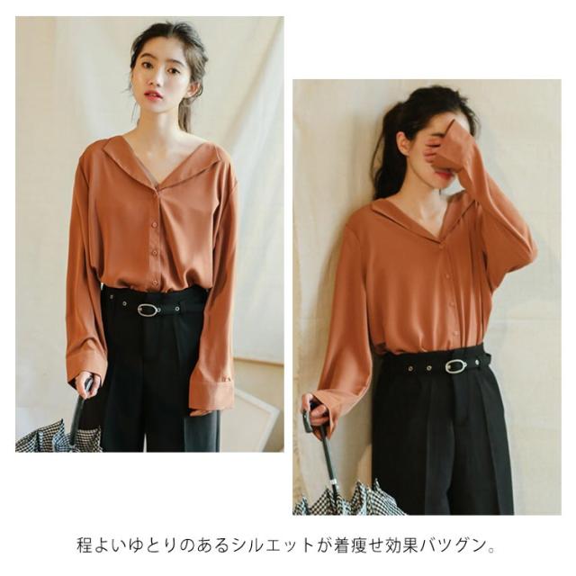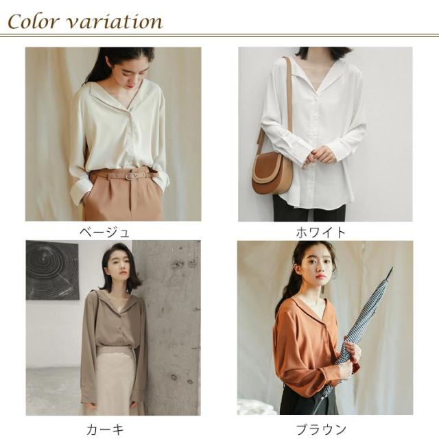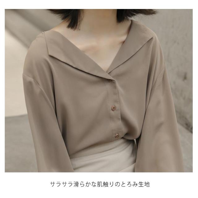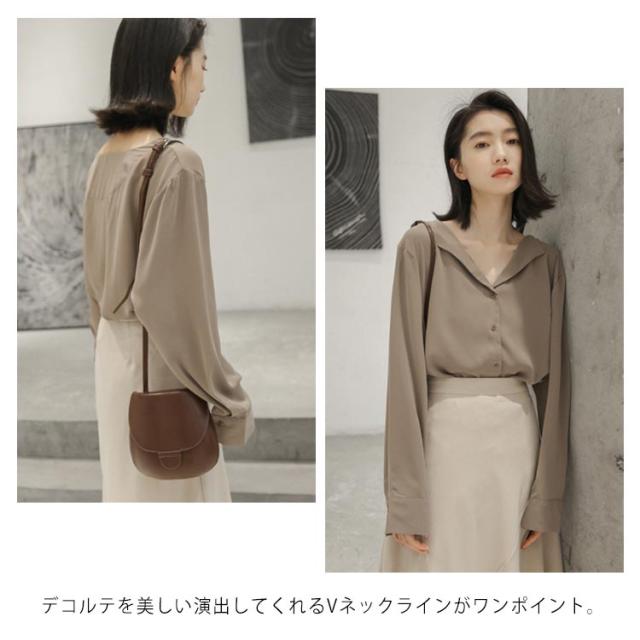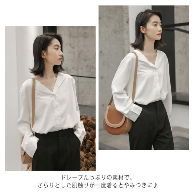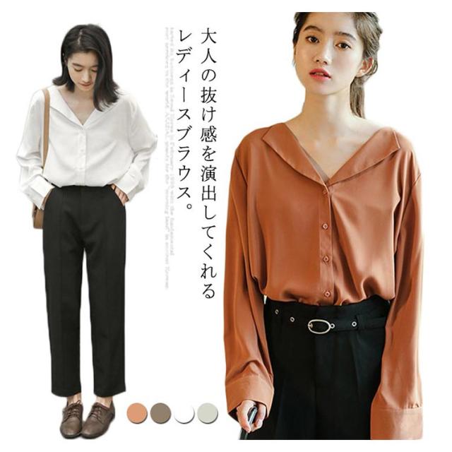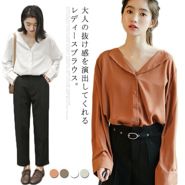 シフォンブラウス Vネック 送料無料 ブラウス ブラウス オープンカラー おしゃれ カジュアルシャツ 長袖 とろみ 春秋 通勤 無地 レディース 20代 30代 40代 シャツ