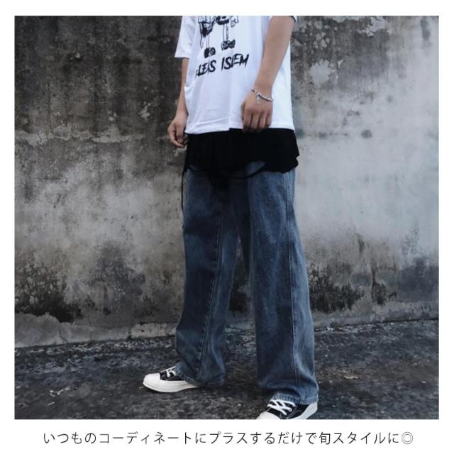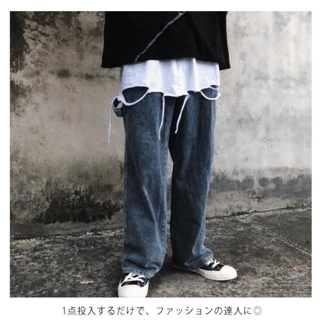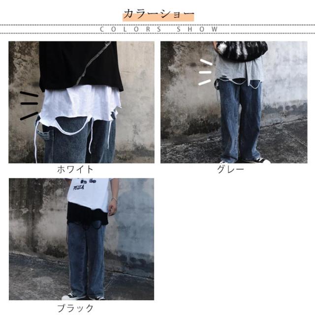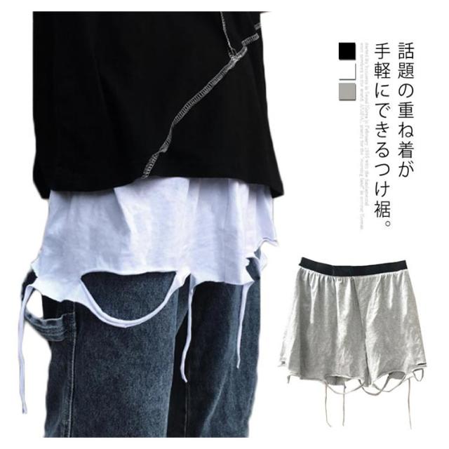 つけ裾 クラッシュ加工 レディース レイヤード メンズ お洒落 カッコイイ 送料無料 ヒップポップ ストリート系 ビター系 腹巻 つけ裾 重ね着 フェイクレイヤード ロング 男女兼用