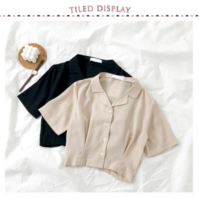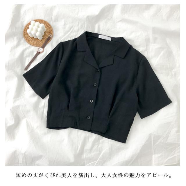シャツ レトロ オープンカラー ショート丈 レディース へそ出し 送料無料 ショート丈 タック 春夏 シフォン トップス おしゃれ 半袖 韓国ファッション 通勤 ブラウス