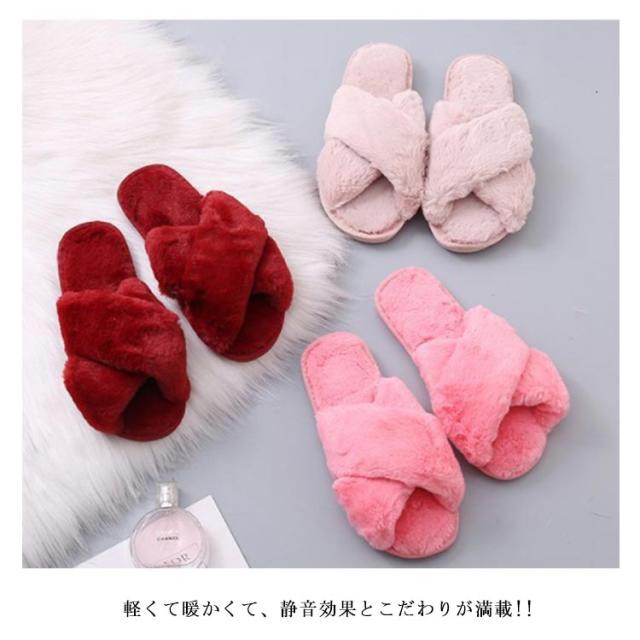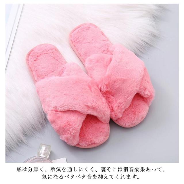 秋冬用 ルームシューズ レディース サンダル ファーサンダル ボア 秋用 シュール ファーシューズ ルームシューズ 軽量 暖かい 軽い フェイクファー 静音 滑りにくい 冬用