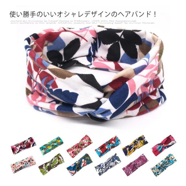 プリント ターバン ヘアアクセ レディース クロスデザイン 幅広 お洒落 ヘアターバン ヘアアクセサリー ヘアバンド ファッション小物 フェミニン感 ヘアバンド