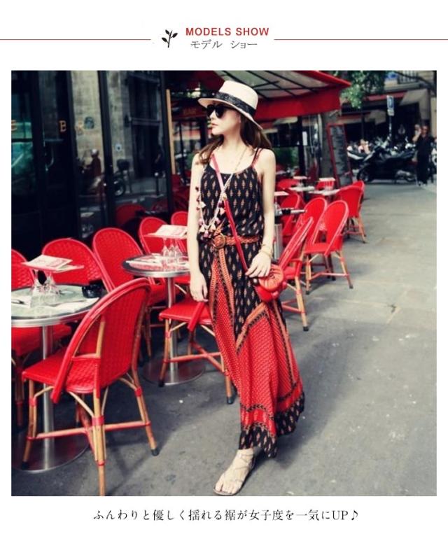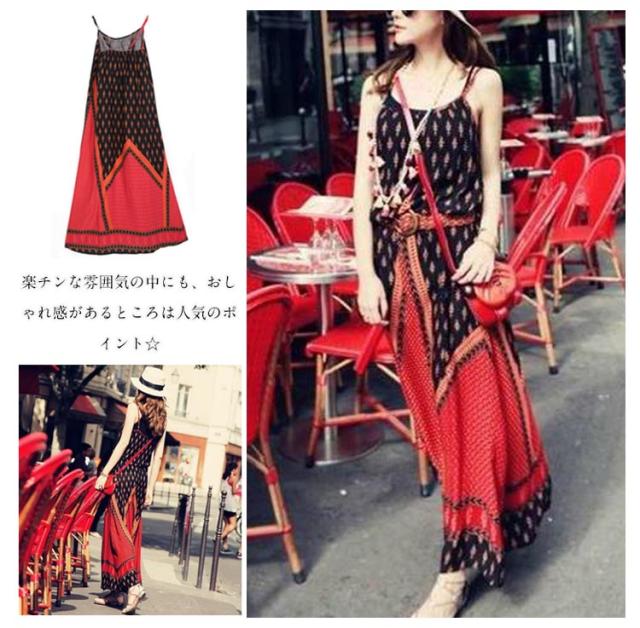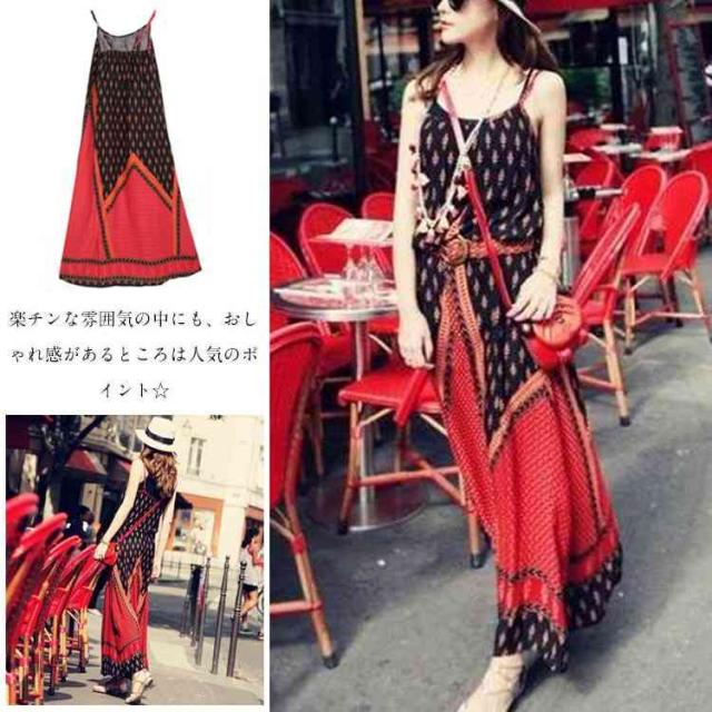 aライン 夏 マキシワンピ フレア 総柄 エスニック キャミソールワンピース ロング マキシ丈 キャミワンピ マキシワンピ ハワイアン リゾート
