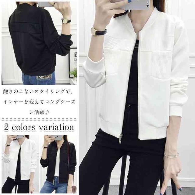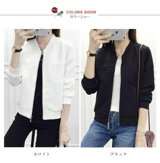 ジップアップ スタジャン ジャケット メッシュコンビ 無地 スタジャン ホワイト ブラック ブルゾン アウター レディース