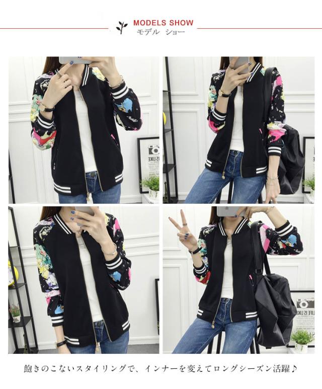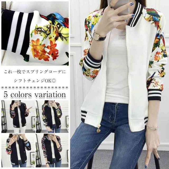 ジャケット スタジャン トレーナー プリント ジップアップ レディース スタジアムジャンパー ブルゾン アウター スタジャン