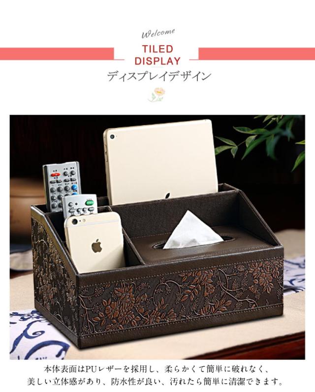 卓上 収納ケース ティッシュケース 小物入れ リモコンラック 収納ケース 多機能収納ボックス大容量 タブレット スマホ 収納ケース