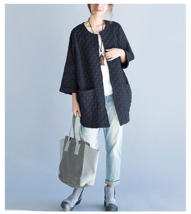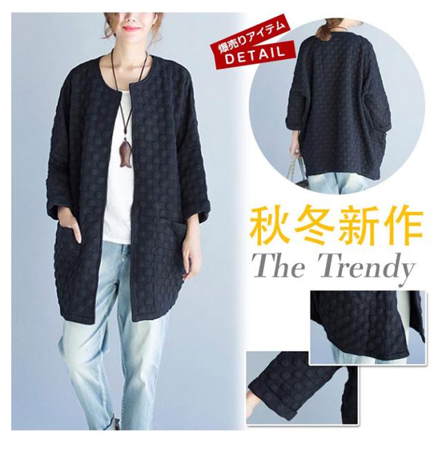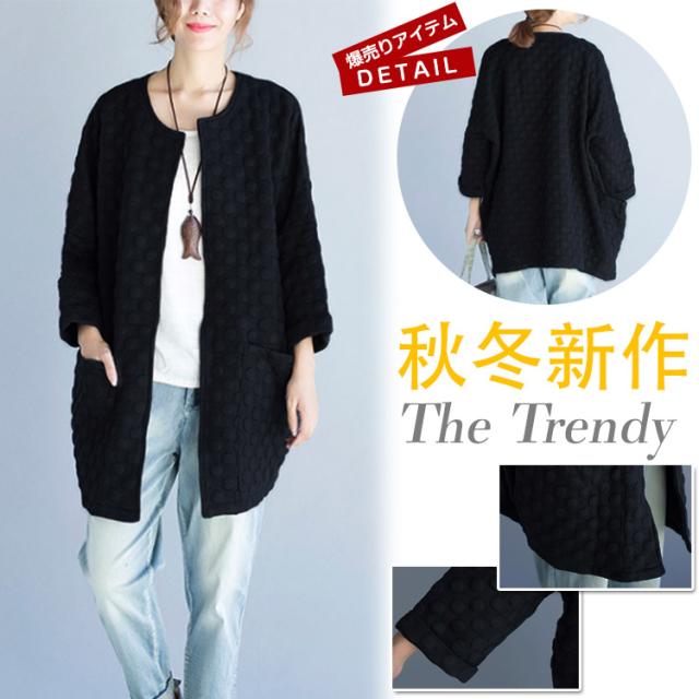 ワンピース ワンピース キルティングジャケット 七分袖 水玉 無地 カジュアルからモードまで自由自在オシャレコート/アウター ドット スプリングコート オーバーサイズ 大きいサイズ マタニティ キルティング