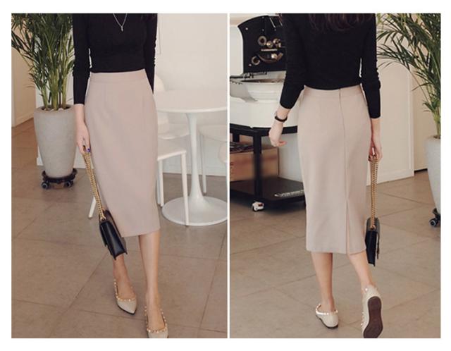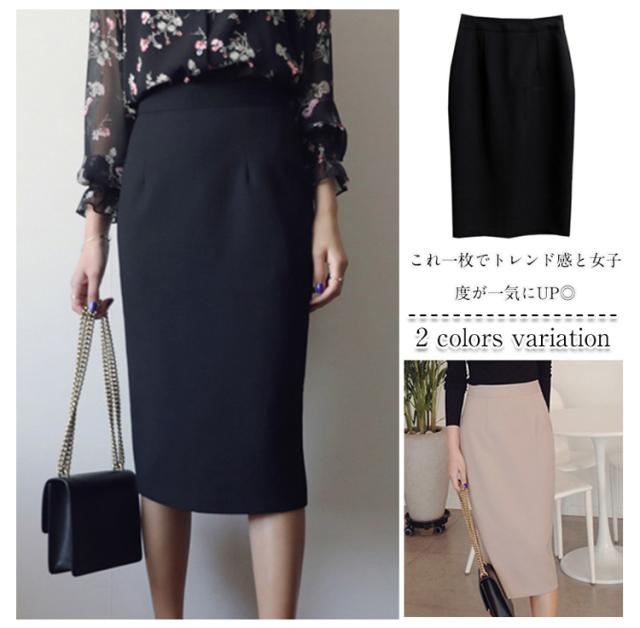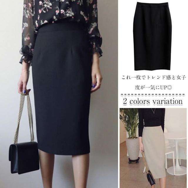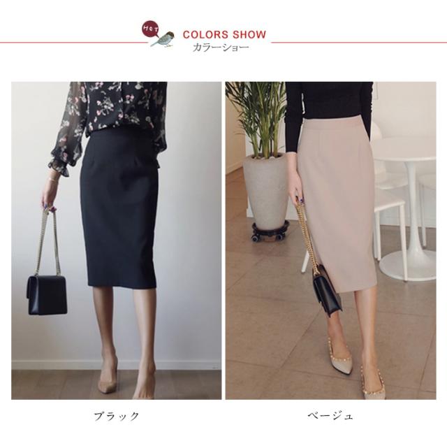 スリット ハイウエスト レディース ストレッチ ミモレ丈 ペンシルスカート ベージュ 無地 タイトスカート オフィス ブラック 夏 秋 ペンシルスカート