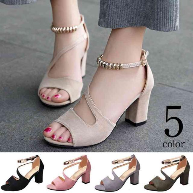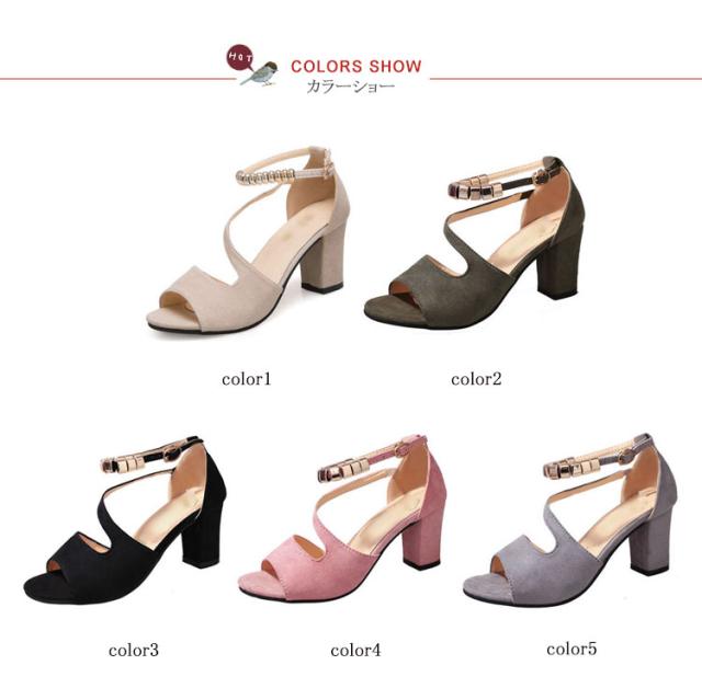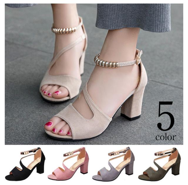 ヒール サンダル ミュール レディース スエード調 チャンキーヒール 太いヒール サンダル