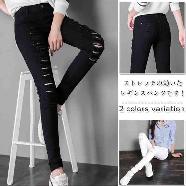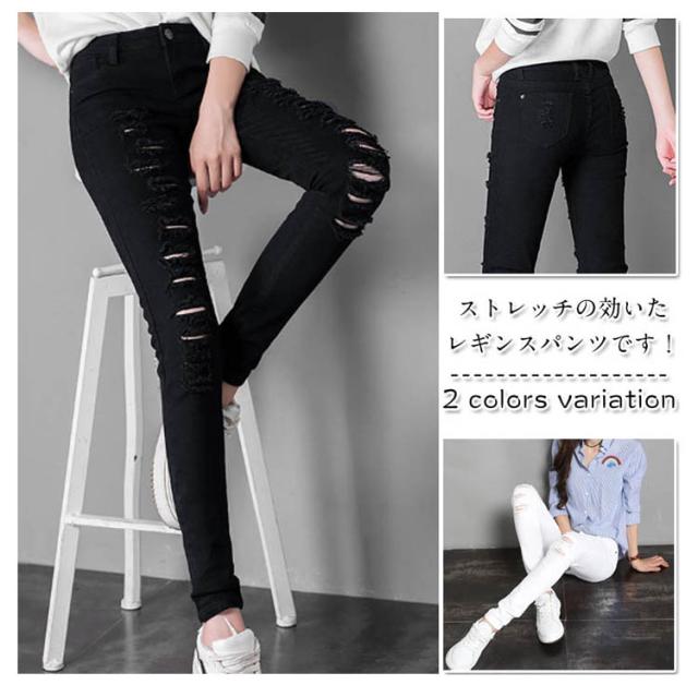 ウエストゴムでとても穿きやすい!白黒 ウエストゴムでとても穿きやすい!白黒 レギンス クラッシュデニム ストレッチパンツ デニンス 細身 引っかき スキニーパンツ