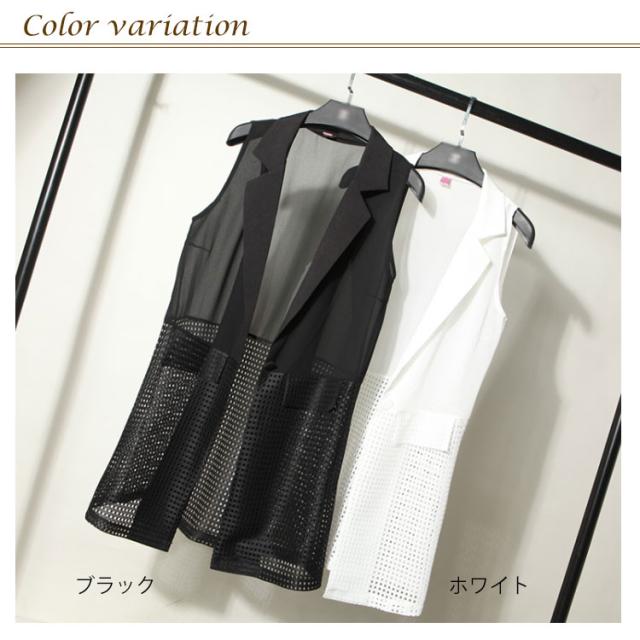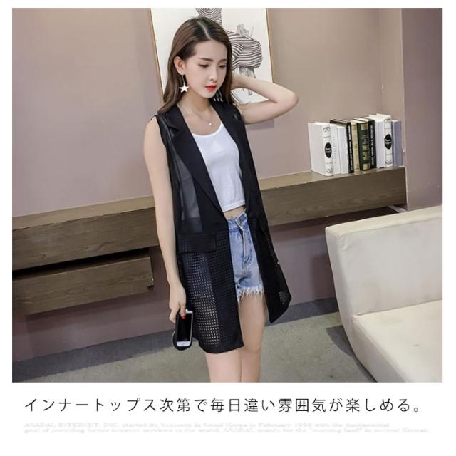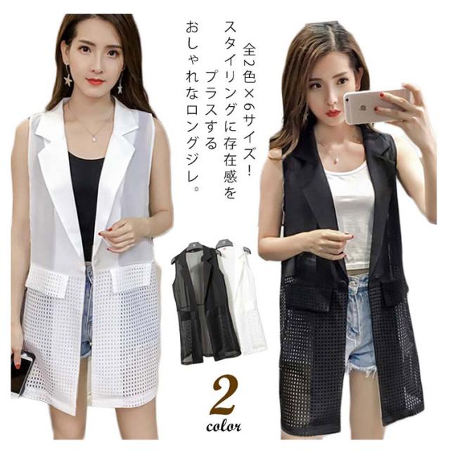 全2色×6サイズ!シフォンカーディガン ロング カーディガン メッシュ サマー ベスト ノースリーブ 全2色×6サイズ!シフォンカーディガン 切り替え シフォン 羽織物 薄手 大きサイズ ジレベスト