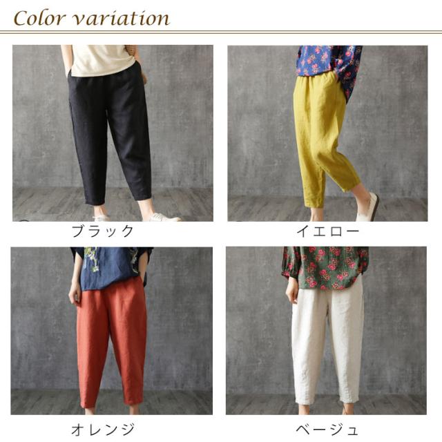 レディース リネン リネンパンツ ボトムス 綿麻 サルエル カジュアルパンツ 九分丈 アンクルパンツ 全7color展開!サルエルパンツ ゆったり 全7color展開!サルエルパンツ