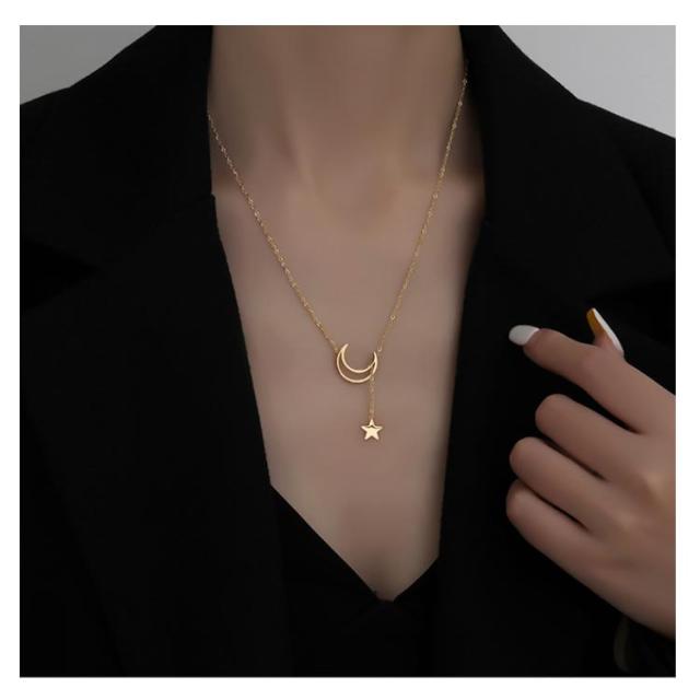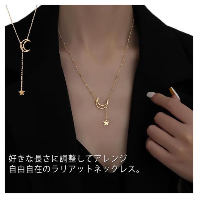 全2色 Y字 ネックレス ラリアット 送料無料 レディース 優雅 月星 ロング ネックレス おしゃれ アクセサリー つけっぱなし ジュエリー ニッケルフリー 金属アレルギー 記念日 誕生日 ギフト プレゼント