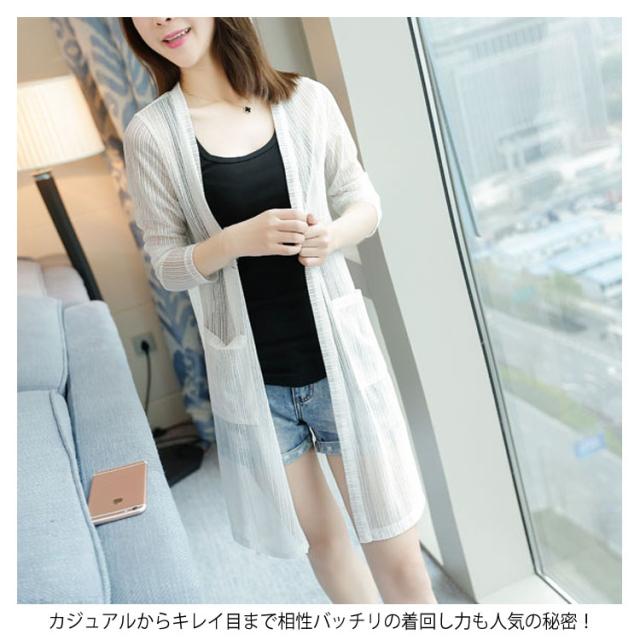 今季さらっと羽織られる!ロングカーディガン ロングカーデ カーディガン レディース サマーカーディガン 夏 透け感 長袖 UV対策 日焼け防止 冷房対策 今季さらっと羽織られる!ロングカーディガン