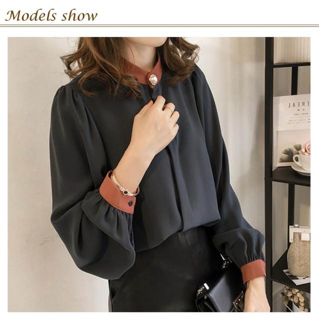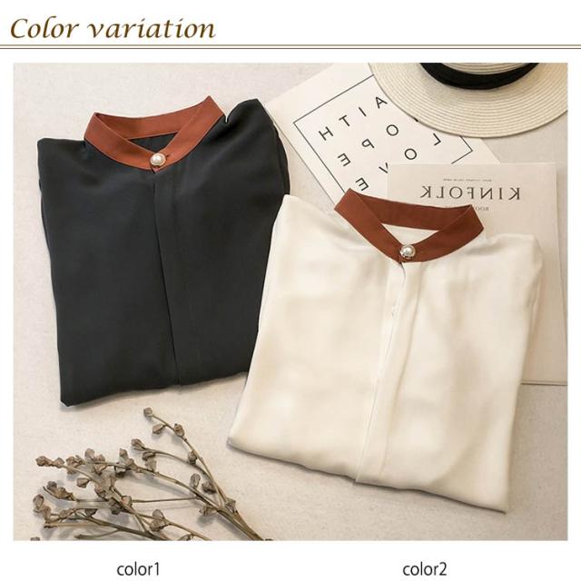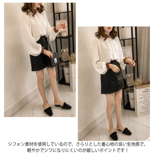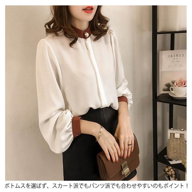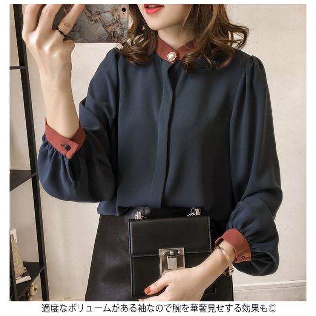 ふんわり袖 ハイネック M-4XLサイズ!シャツ ブラウス トップス 長袖 パススリーブ 配色 シフォンブラウス スタンドカラー 薄手 ゆったり カジュアル キレイめ 通勤 M-4XLサイズ!シャツ 春