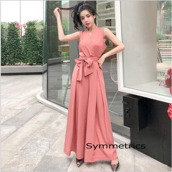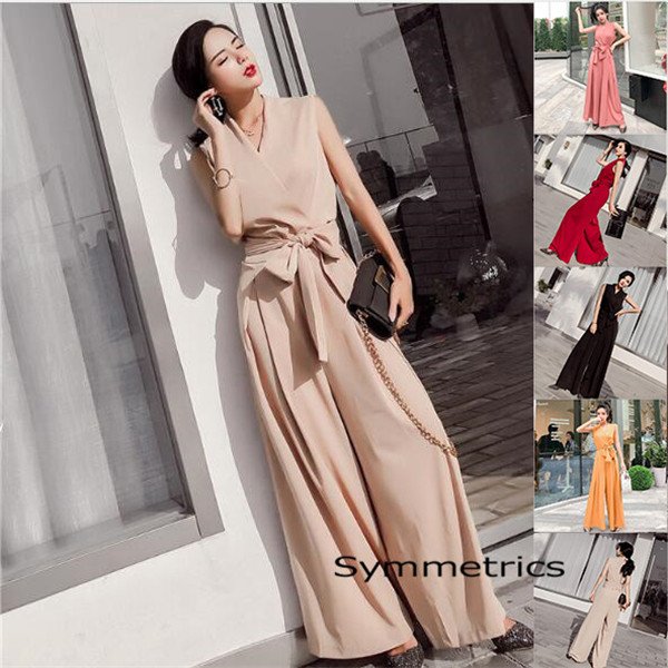 パーティードレス 夏 大きいサイズ お呼ばれ 春 結婚式 パーティードレス オールインワン ワイドパンツ ドレス 袖無し Vネック レディース