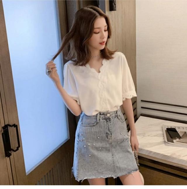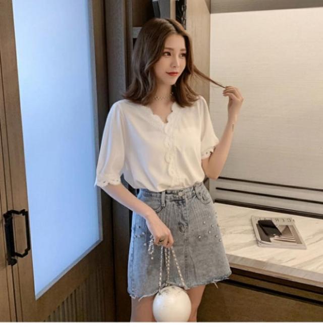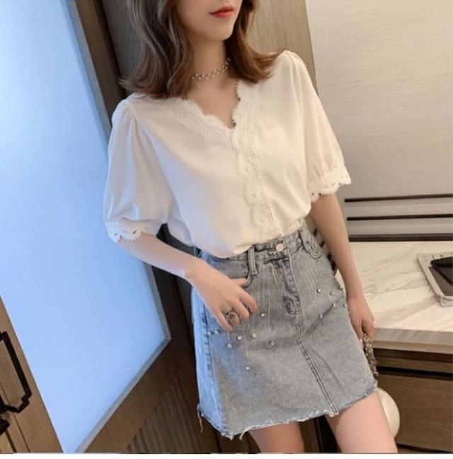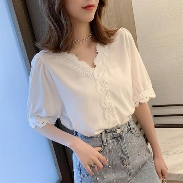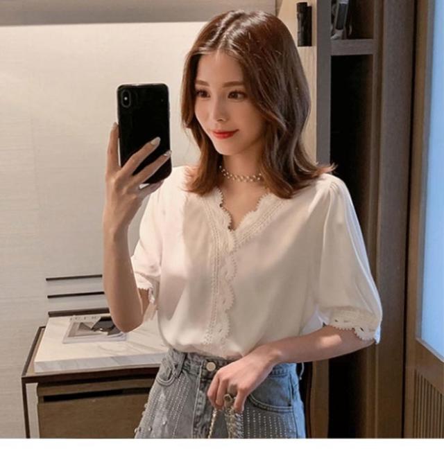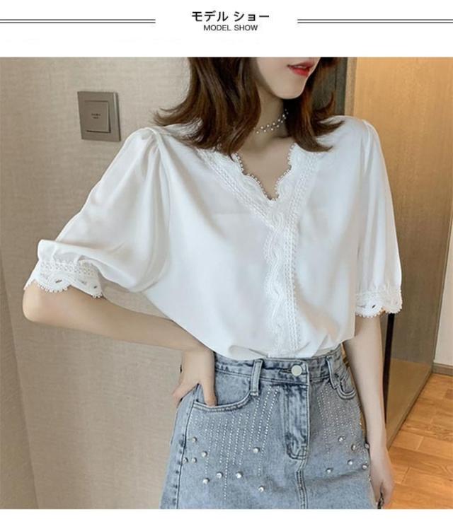 シフォンブラウス 夏 ブラウス レディース 半袖 Vネック サマーブラウス ゆったり レース 半袖ブラウス シフォン シャツ 白 シフォンブラウス
