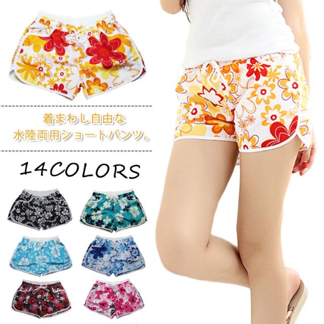 ラッシュガード 水陸両用 レディース 水着 ショートパンツ サーフパンツ 体型カバー 総柄 パンツ ビーチウエア 海水浴 スポーツ サーフパンツ プリント ボトムス UVカット
