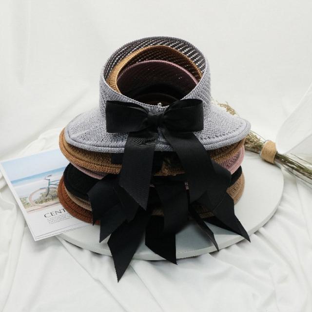 つば広ハット 麦わら帽子 ハット レデイース サンバイザー 春夏 リボン おしゃれ 日よけ 折りたたみ ビーチハット 旅行 小顔効果 麦わら帽子 UVカット