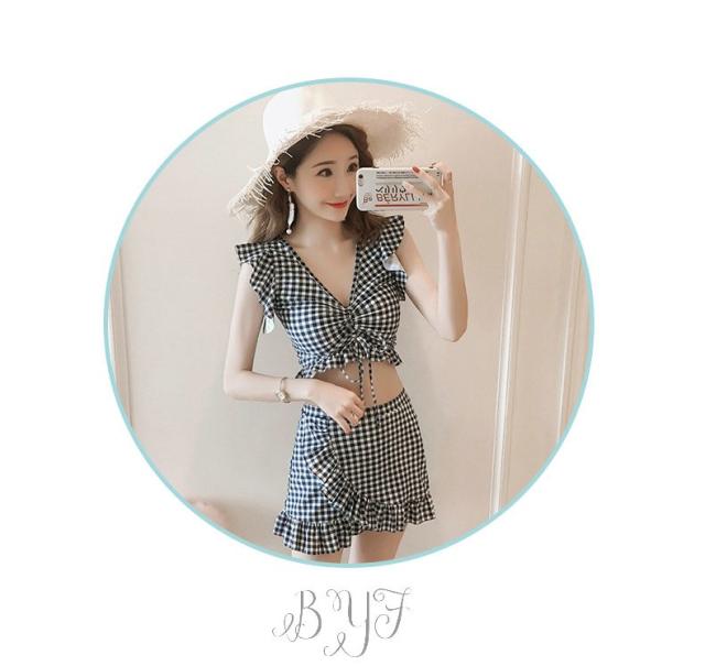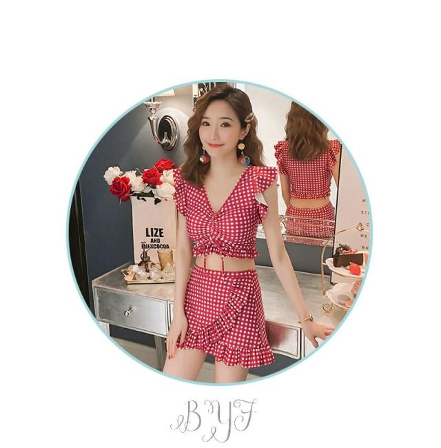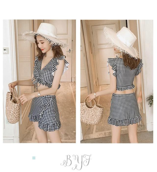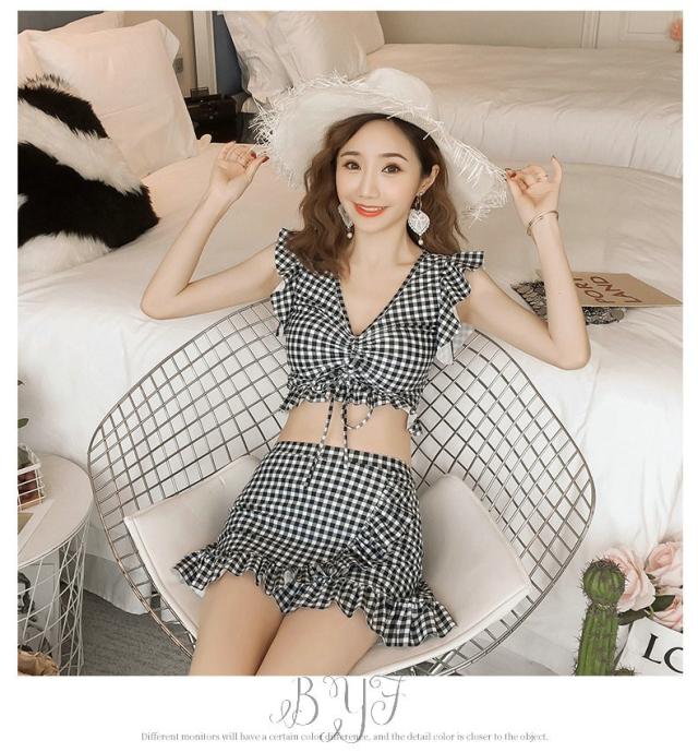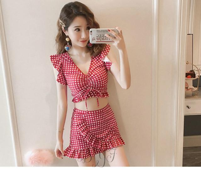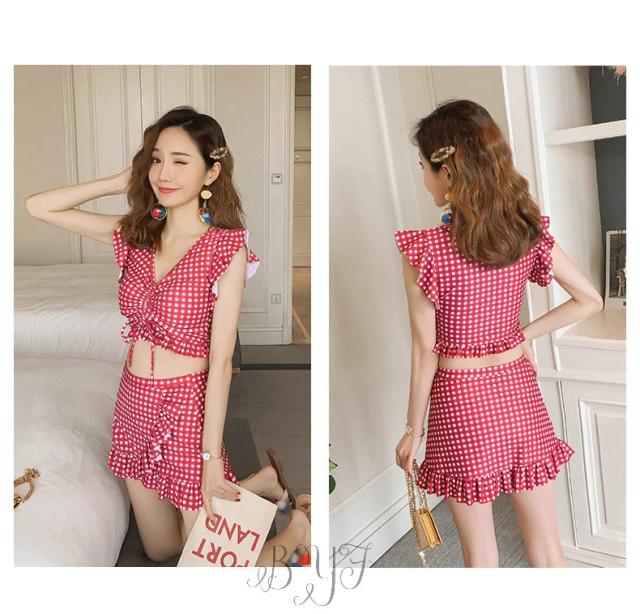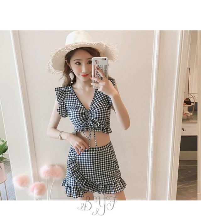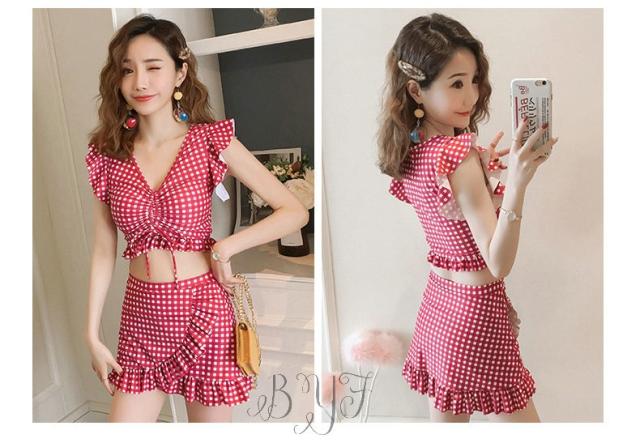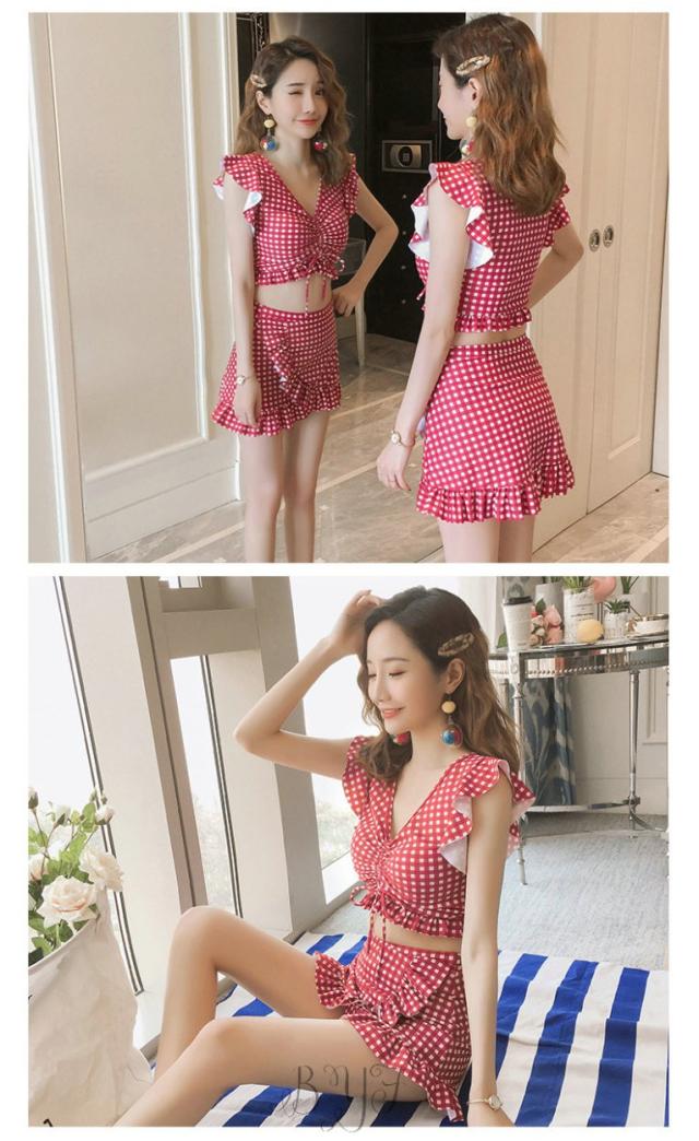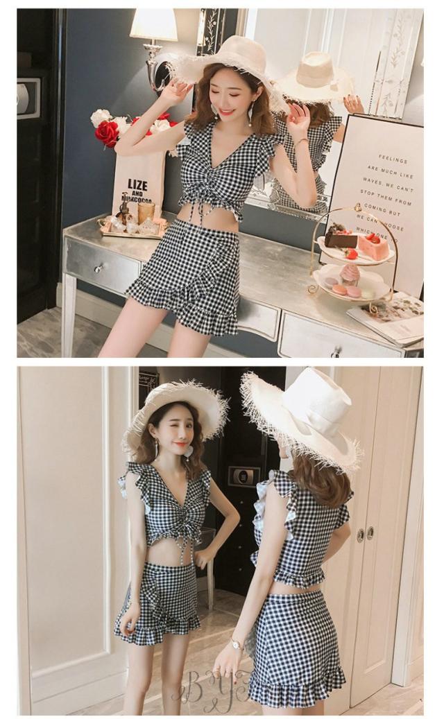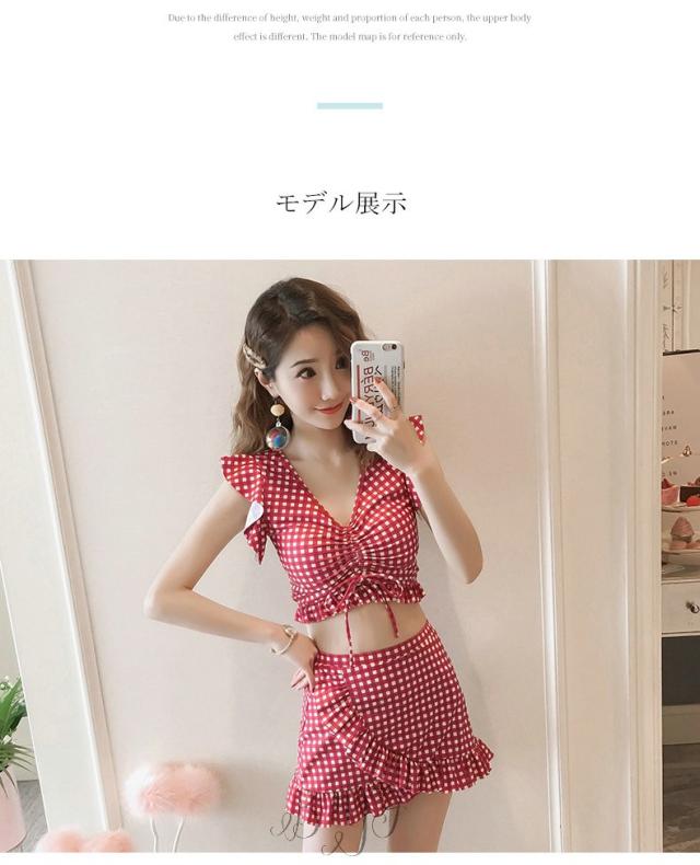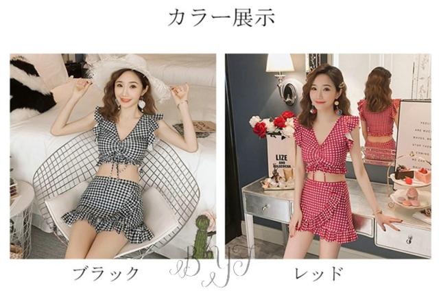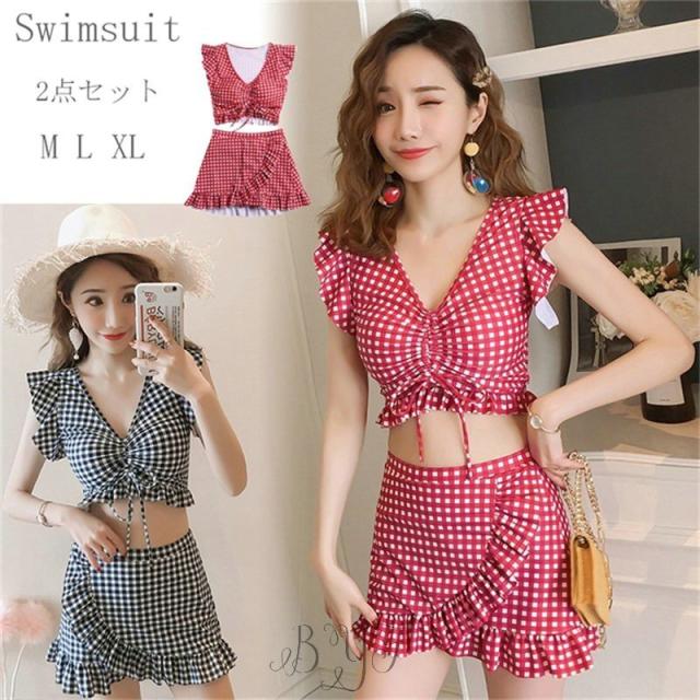 ギンガムチェック柄 2点セット ビスチェ風 30代 レディース 人気 フリル フレア 女性用 20代 ビキニ 40代 水着 大人用 女性 ママ用 海 水着