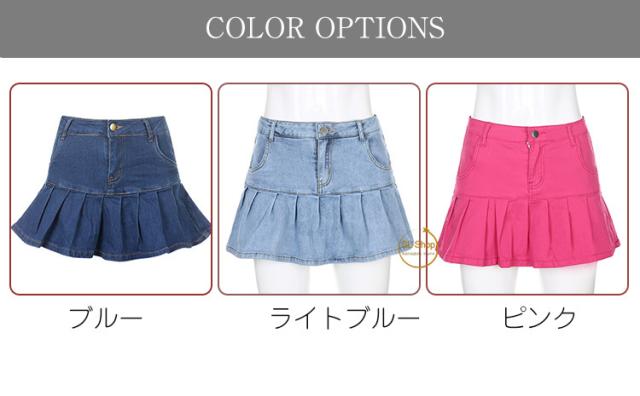 個性的 スカート レディース プリーツ スカート 裏パンツ有 ストレッチ性 デニム おしゃれ ミニスカート