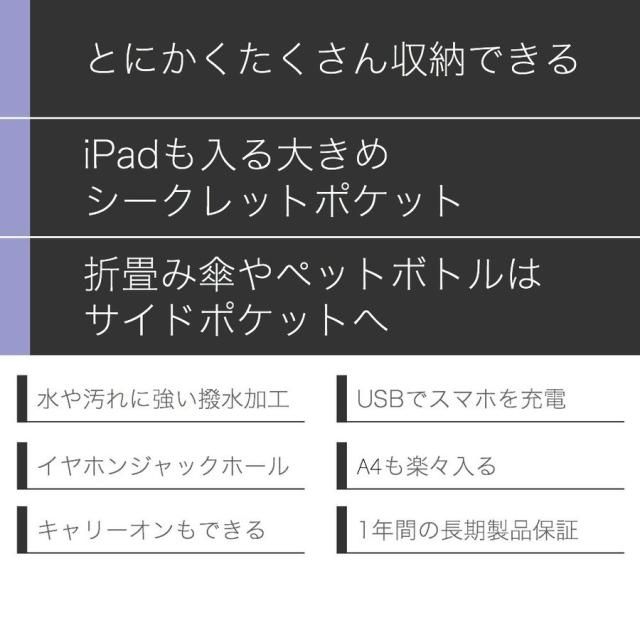 | サイズについての説明 | 母の日 プレゼント ギフト ■商品説明 特徴 ・A4もPCもらくらく入る大容量 ・大きく開くので中身が見やすい ・スマホや貴重品の収納用、シークレットポケット ・ペットボトルや折畳み傘用、サイドポケット ・撥水加工なので汚れにくく手入れもしやすい ・イヤホンジャックホール付き ・キャリーオンもできるので旅行にも使える ・USBからスマホを使いながら充電できる ・耐久性のあるファスナーは壊れにくい ・細部の縫製も丁寧だから丈夫で長持ち ・バッグ自体が軽く持ち運びも楽 ・柔らかい肩ベルト採用で長時間背負っても痛くなりにくい ・持ち手もしっかりした素材で破れにくい ・長さ調節ベルトは丈夫で軽い素材 ・iPadやタブレットも余裕で入る ・毎日のコーデを考えるのが楽しくなる ・通勤(ビジネス用)、通学(学校用)にも大活躍 ・30日間の長期製品保証 ・気に入らなければ返品OK 仕様 サイズ:(約)高さ44cm×横30cm×マチ16cm 重量:(約)480g 素材:オックスフォード生地 カラー:ブラック、ネイビー、グレー |