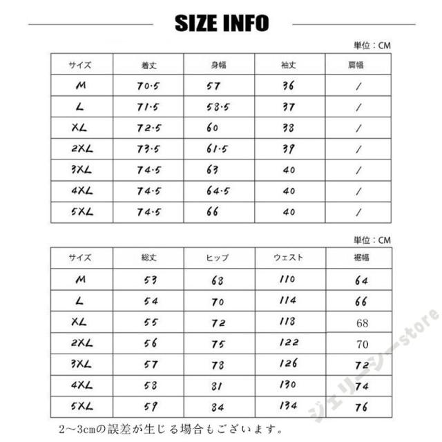 | サイズ | M L XL 2XL 3XL 4XL 5XL |