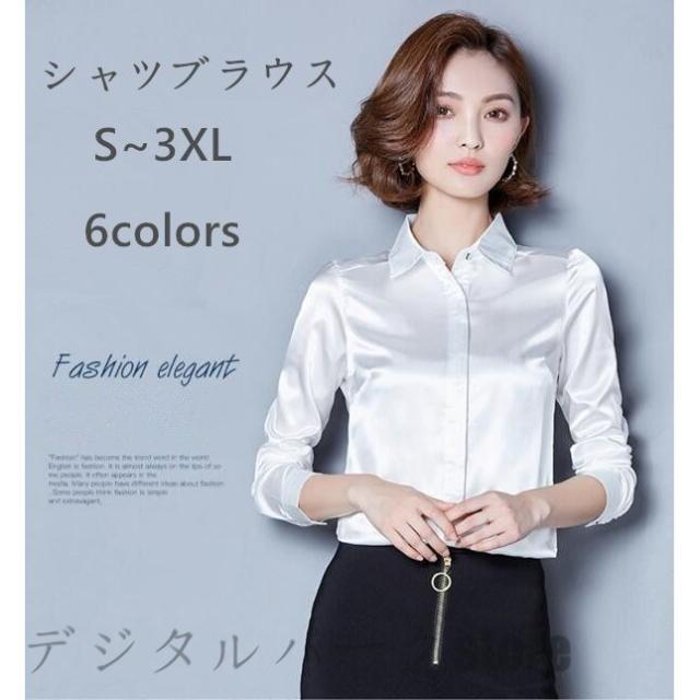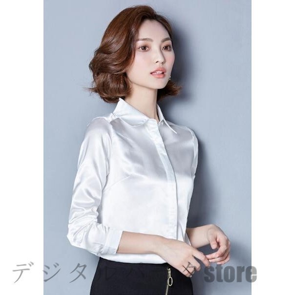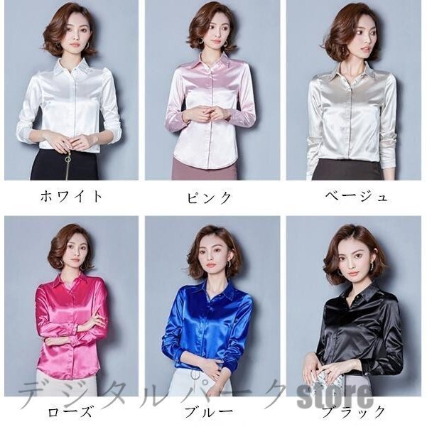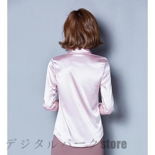 トップス シャツ ブラウス 長袖シャツ サテン ブラウス 無地 光沢 上品 大きいサイズ 通勤 OL 事務 レディース