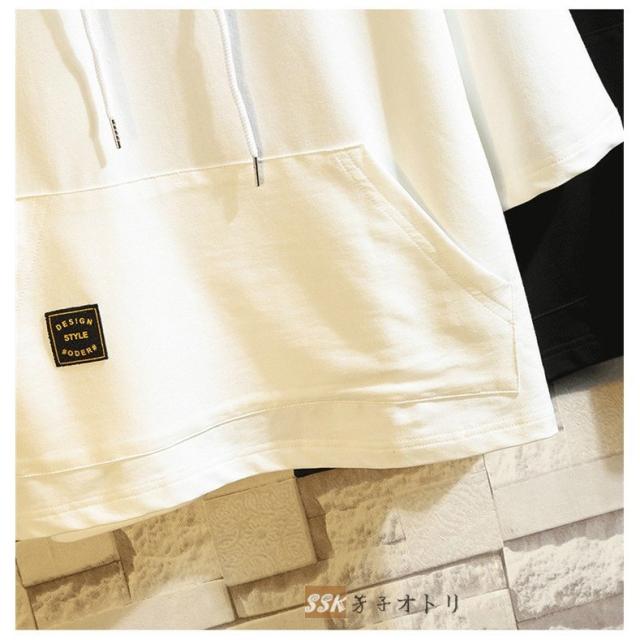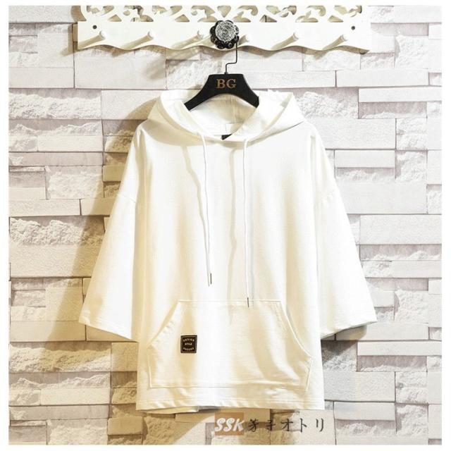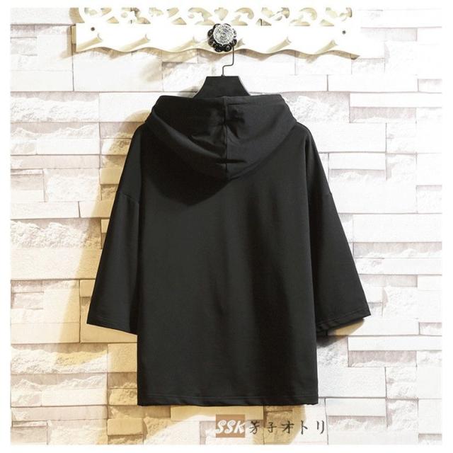 七分袖パーカー 夏服 無地 パーカー プルオーバーパーカー サマーパーカー 七分袖パーカー フード付き メンズ