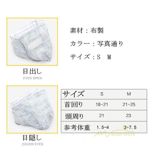 | サイズについての説明 | カラー:写真通り サイズ: S 頭周り:21cm 首周り:18-21cm 参考体重:1.5-4kg M 頭周り:23cm 首周り:21-25cm 参考体重:3-7.5kg |