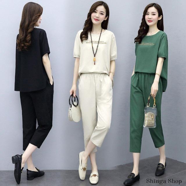 40代 きれいめ レディース セットアップ 夏 Tシャツ 春 ジャージ 部屋着 上下セット 九分丈パンツ 運動服 お洒落 韓国風 カジュアル ジャージ 半袖