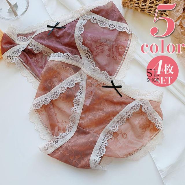 レディース レース 女子 4枚セット ショーツ 下着 セクシー シースルー 可愛い 20代 ショーツ